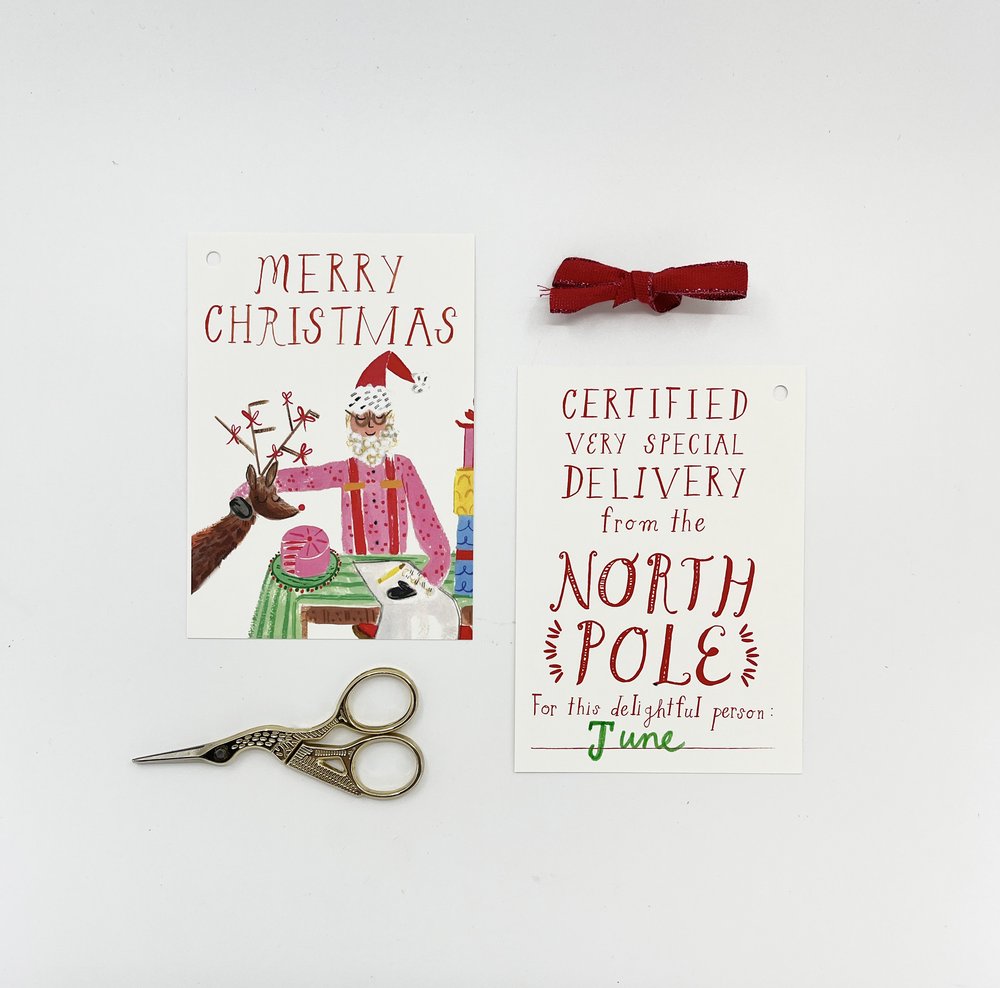 Hand-illustrated by Mr. Boddington the North Pole, these gift tags are to be used exclusively for presents delivered by Santa himself!