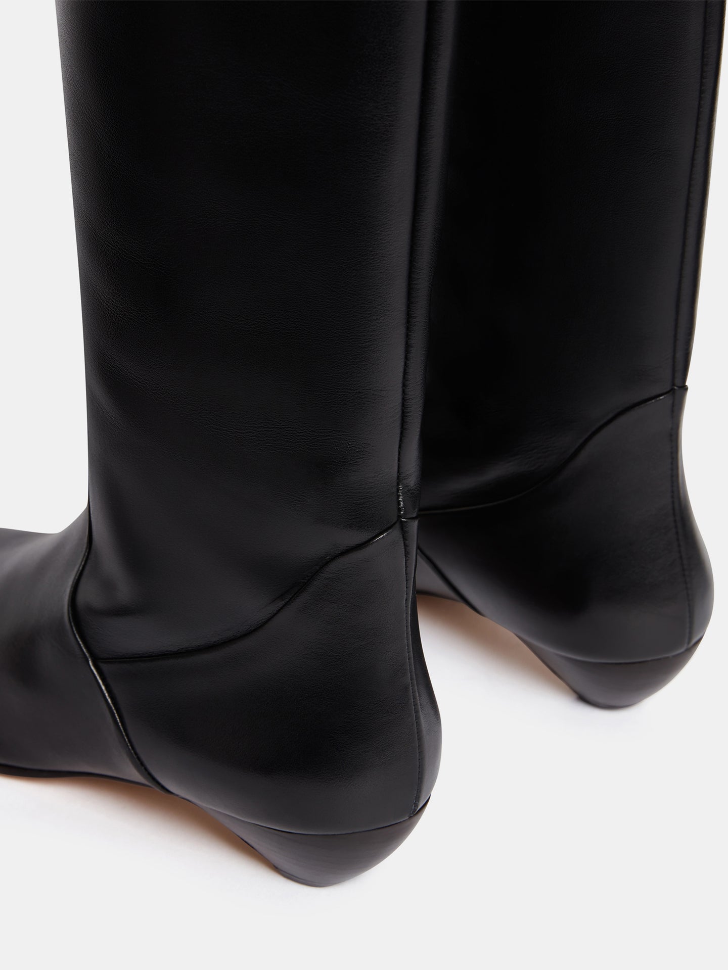 The Allegra Riding Boot is Le Monde Béryl's take on an equestrian classic. Handcrafted in smooth black leather, it's built with a cushioned calf leather insole for comfort and finished with discreet leather pull tabs for ease of wear. A sturdy 35mm heel lends subtle height while keeping the silhouette practical for everyday use. Elegant yet grounded, it's a boot designed to move easily from day to night, city to countryside.