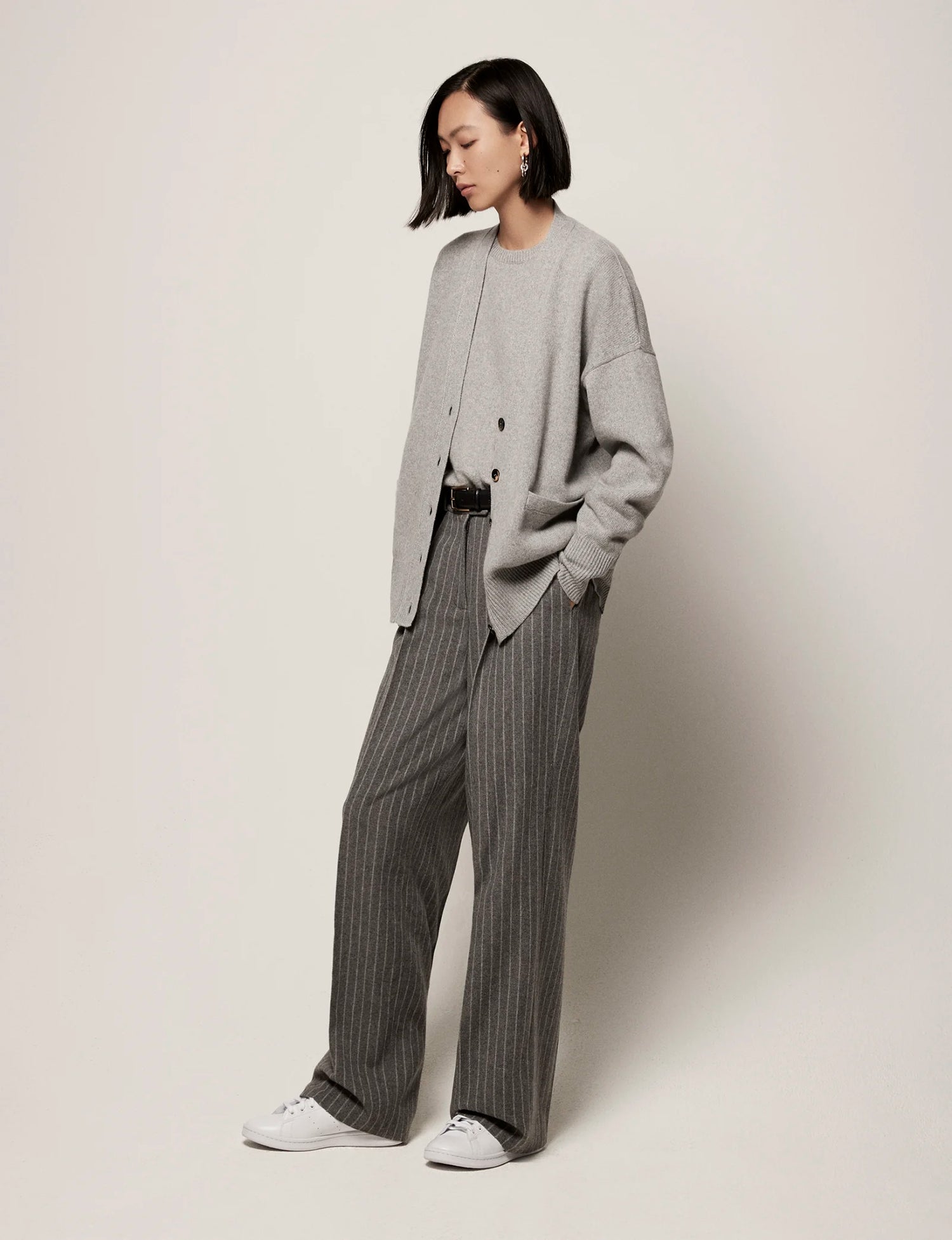 Bringing refinement to your every day, Another Tomorrow's recycled cashmere Drop Shoulder Cardigan comes with horned buttons and two front pockets.