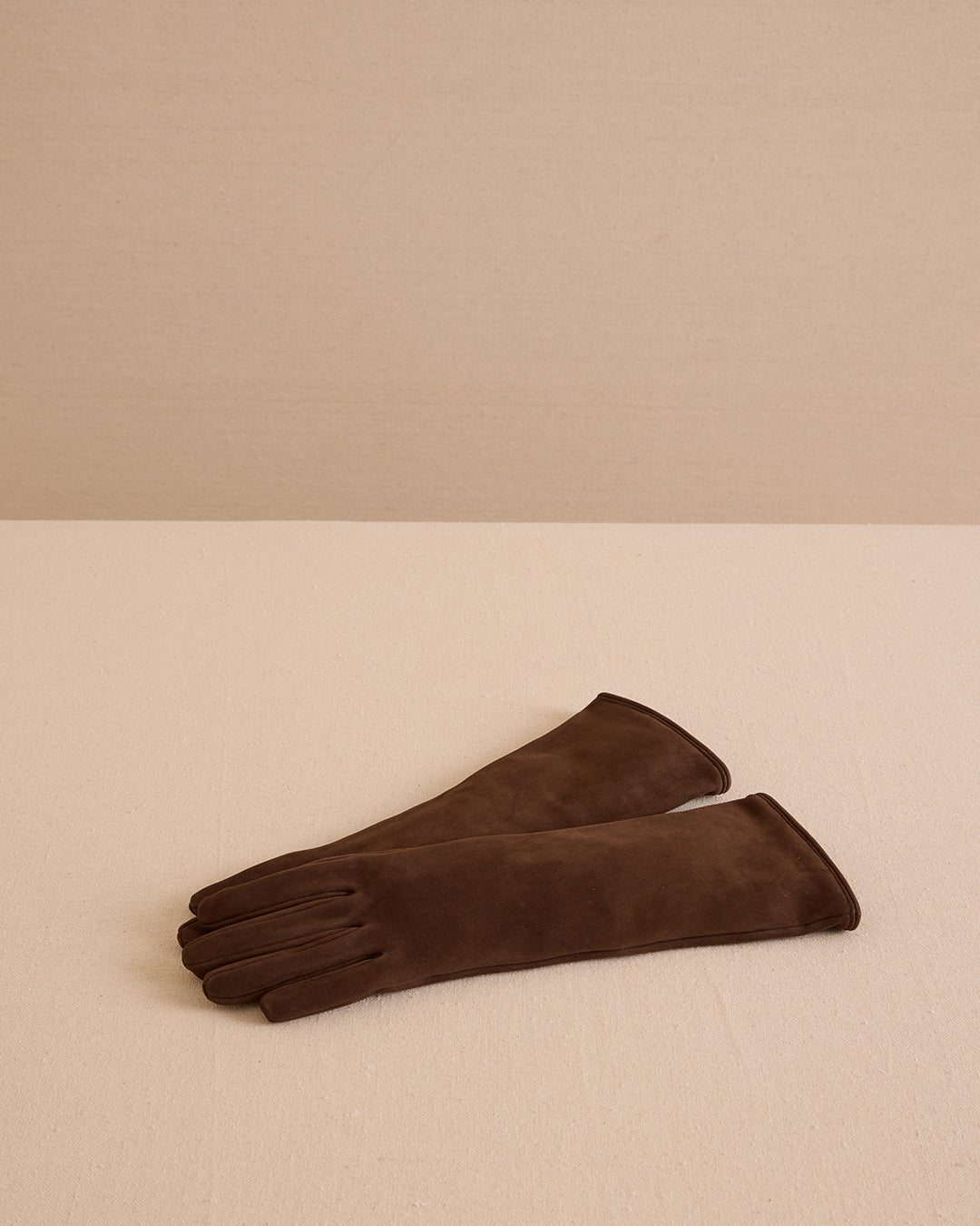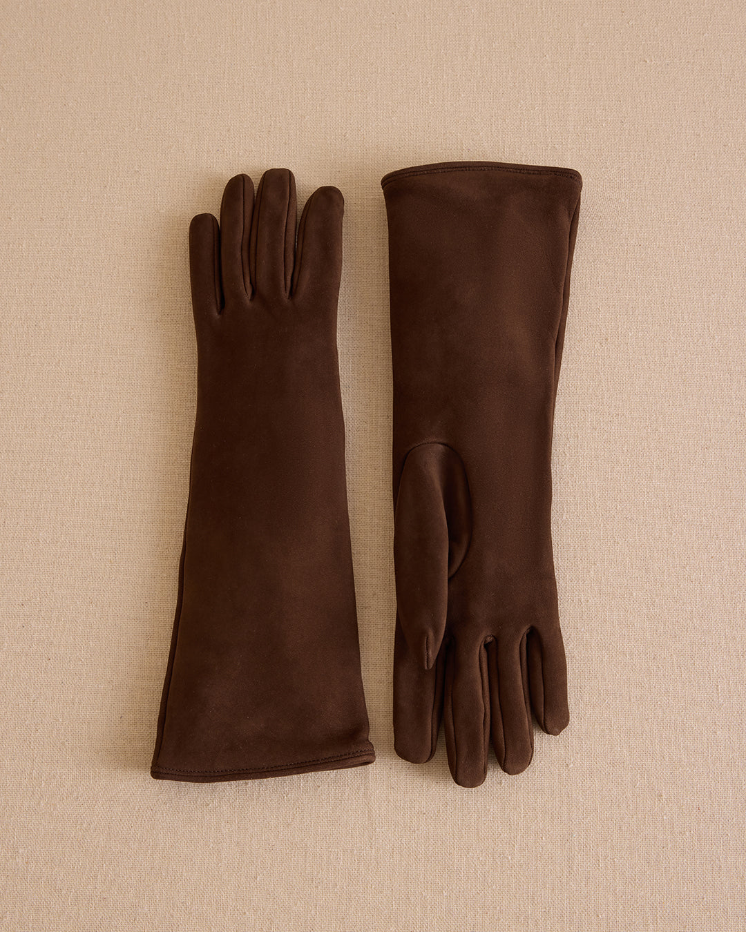 Our medium-length gloves are the ultimate accessory this Fall. Hand-crafted in Italy from the softest nubuck calfskin leather and lined in 100% cashmere, this length is perfect to pair with 3/4 sleeved coats or jackets. Take styling tips from the runway and pair yours with tonal tailoring.