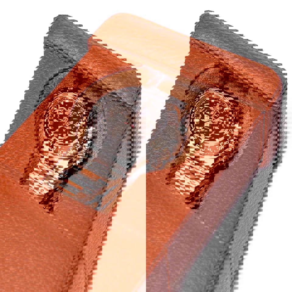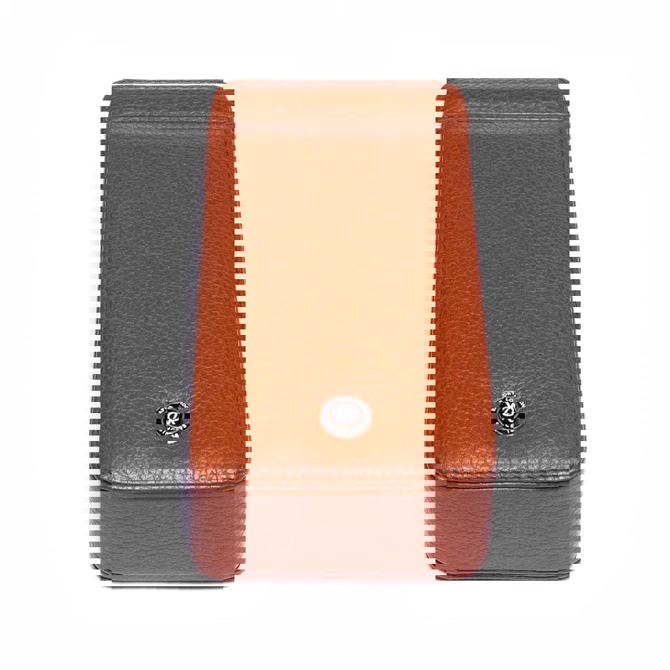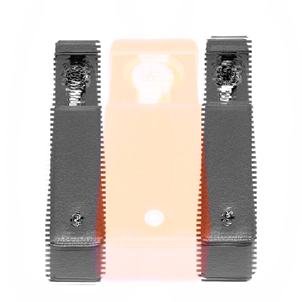A robust single watch slip case made in the finest quality soft pebble grain leather, hand stitched and lined in soft suede. The top of the case slides away from the base revealing a cut out section to place your watch in securely. It is ideal for travelling and protecting your watch at home.