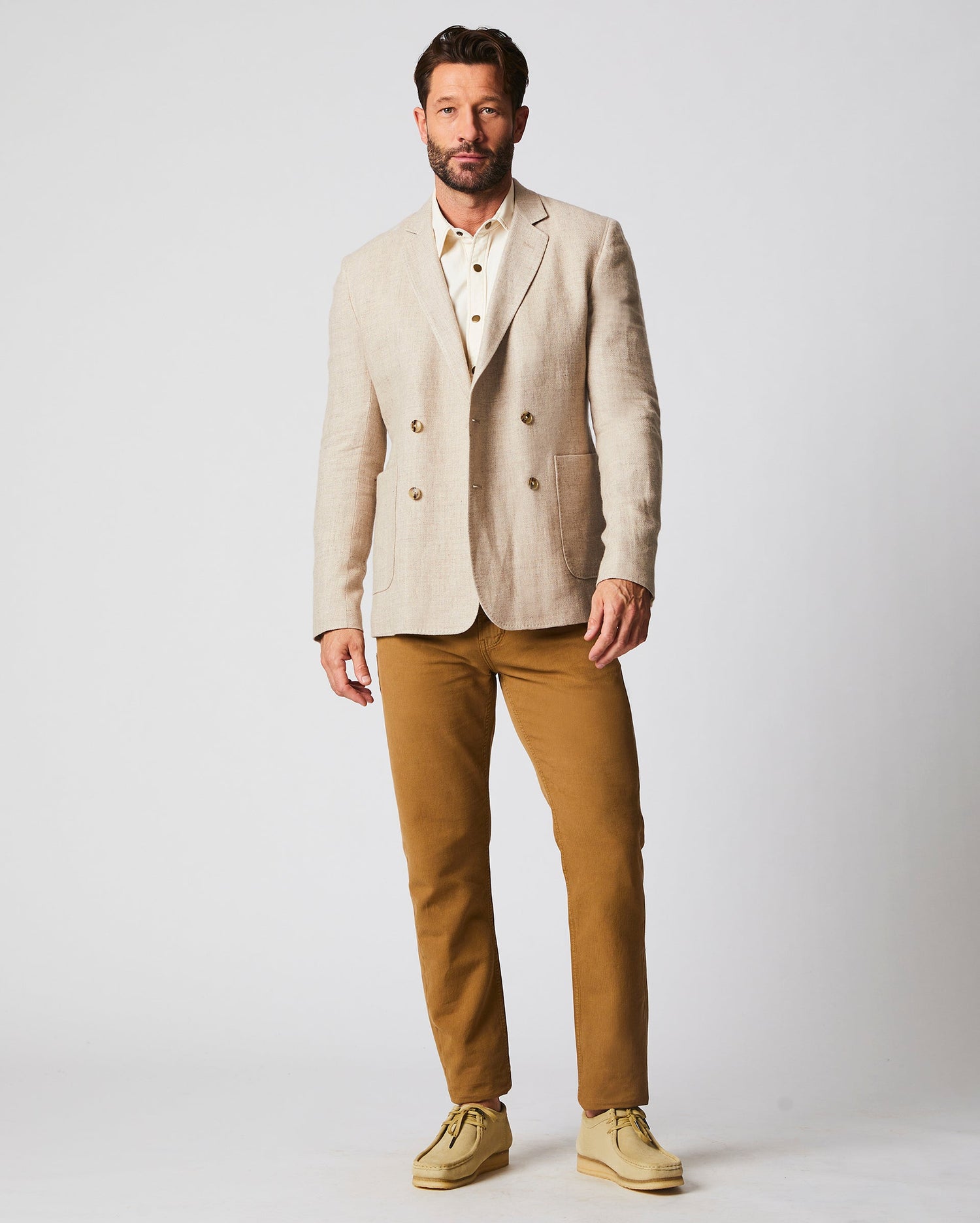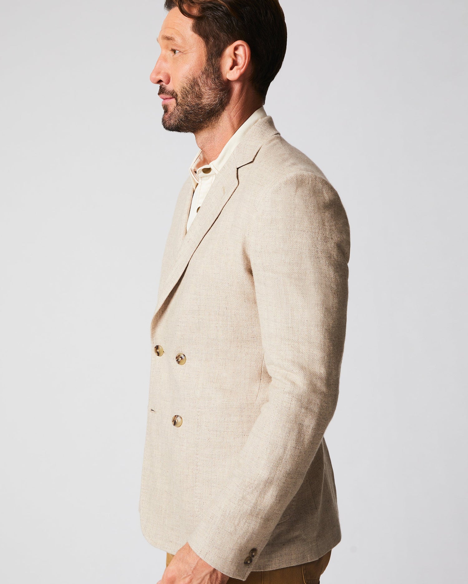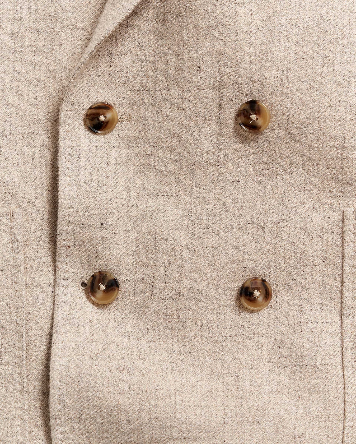 Crafted from a luxurious blend of linen, silk, cashmere, and virgin wool, the unstructured, double-breasted Jubilee Jacket is both relaxed and refined.