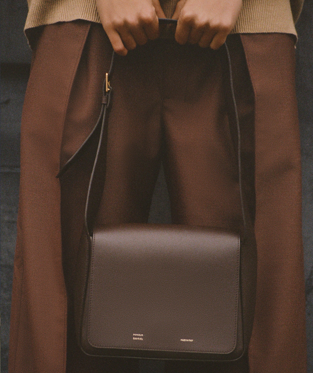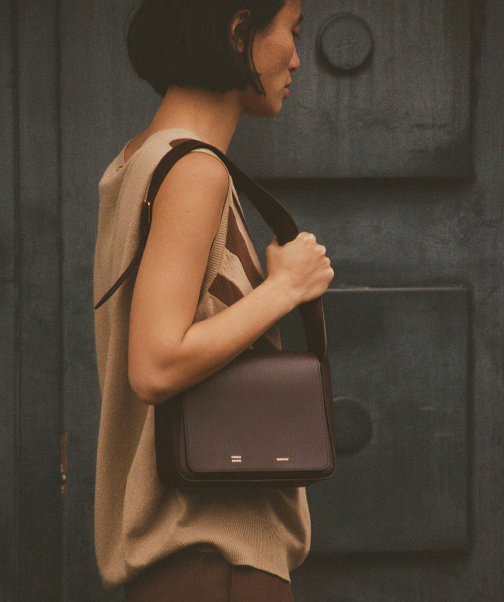 !!!Description---The Box Shoulder Bag is a softly structured design crafted from Italian soft calf leather and lambskin lining. Featuring an interior slip pocket, magnetic closure, and adjustable strap with buckle, it’s perfectly sized to fit essentials like an iPad Mini.