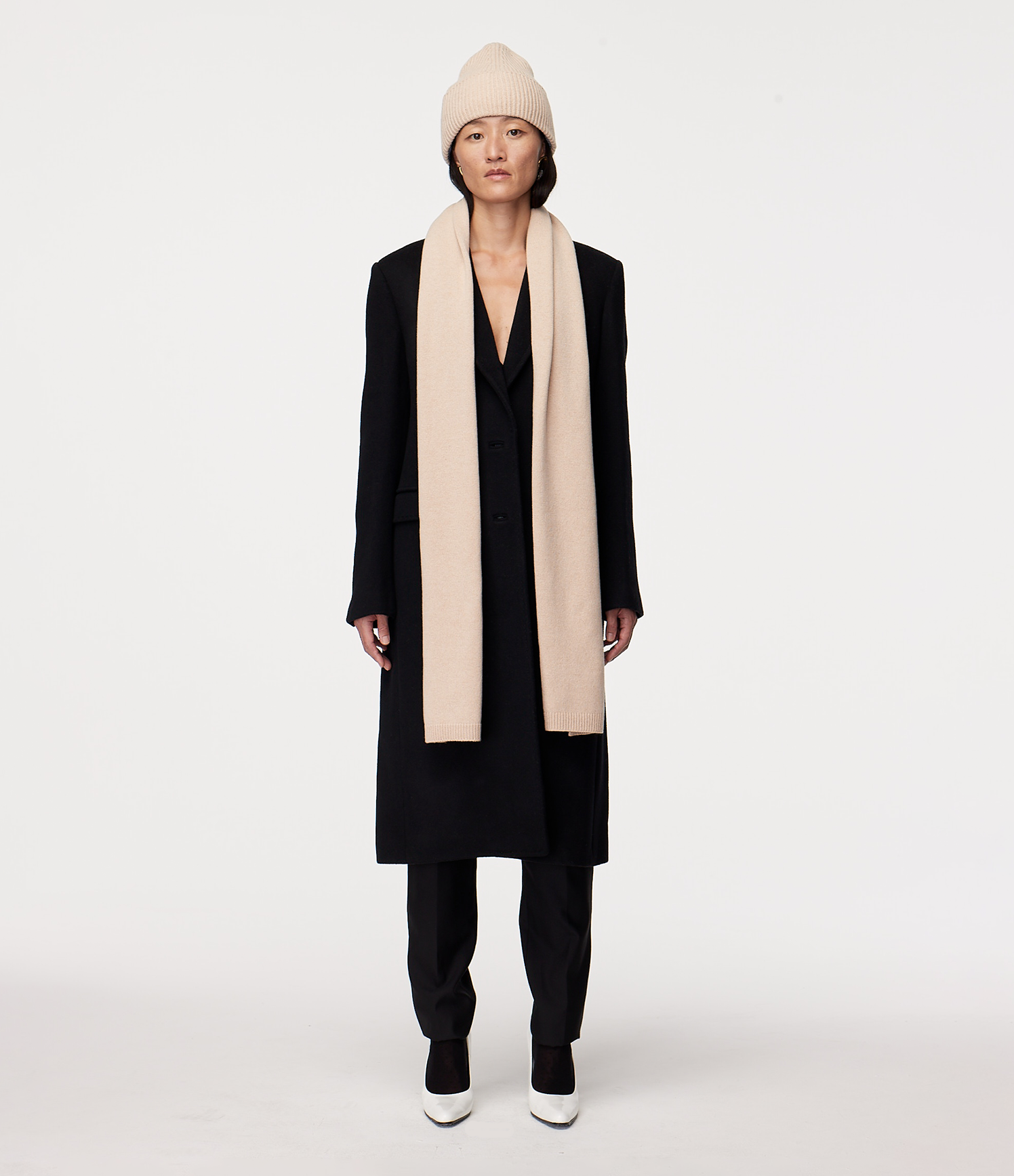 Soft, substantial, and endlessly versatile—the Cashmere Scarf in Ivory is a timeless winter essential. Crafted from recycled cashmere, it offers generous volume and exceptional warmth without weight. Its clean finish and neutral hue make it easy to drape over tailored outerwear, loop around the neck for added coziness, or layer with matching cashmere accessories for a refined tonal look. Effortless, elegant, and made to last season after season.