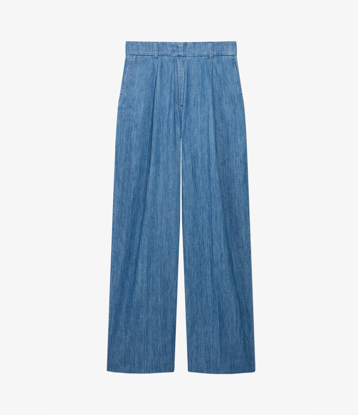 An easy balance of structure and drape, the Chambray Relaxed Wide Leg Pant in is crafted from lightweight organic cotton for a fluid, effortless fit. Sitting low on the waist, the silhouette falls into a wide leg with soft front pleats. Designed for versatility, they pair just as naturally with a crisp white shirt as with a ribbed tank or slouchy knit. Finished with side and back welt pockets for a touch of polish, these pants are a modern classic in motion.