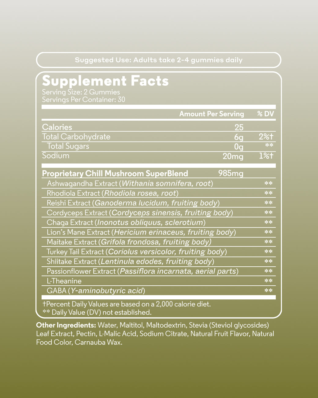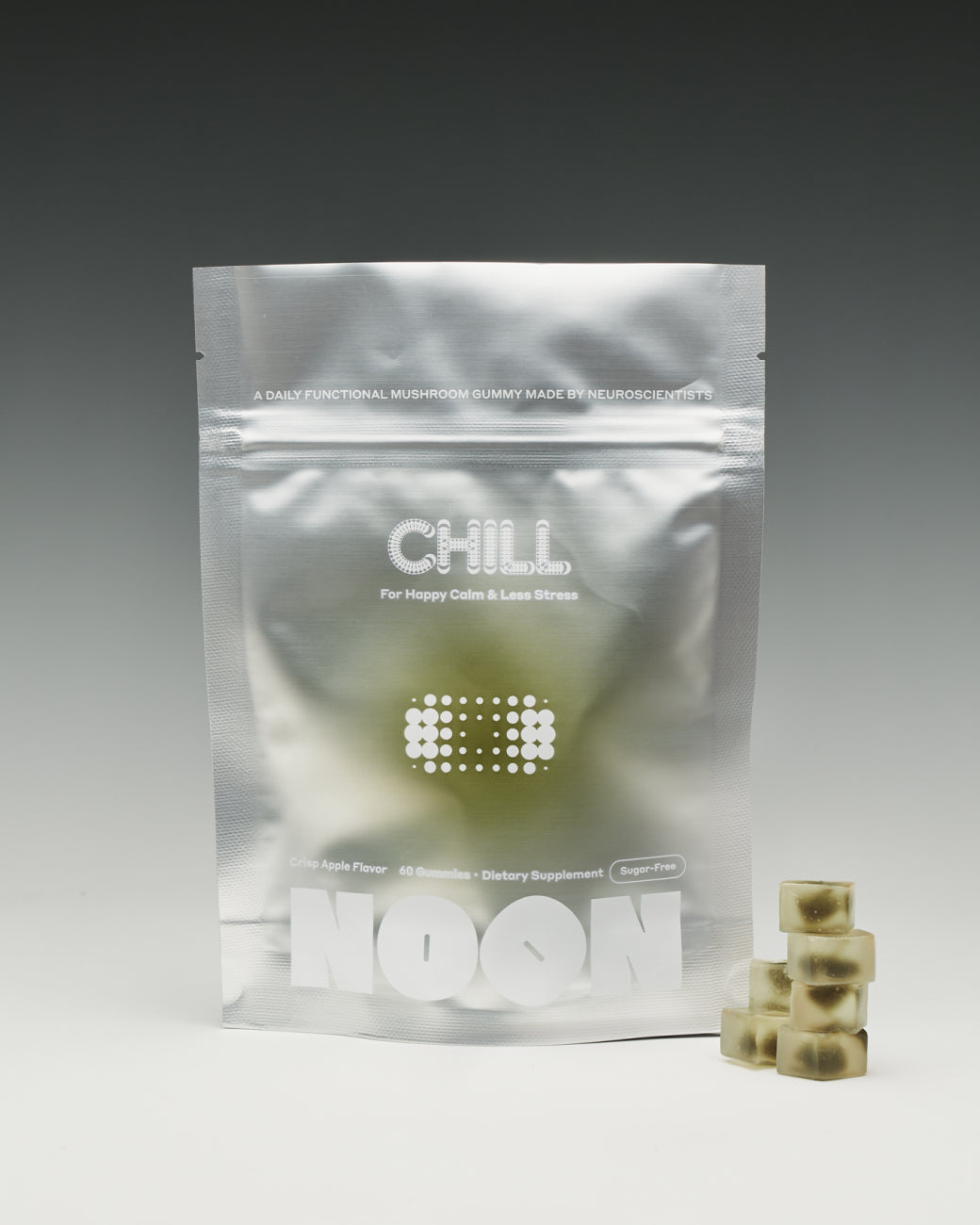 Dual-layer gummies that work faster, better. NOON Chill Mushroom Gummies made to take the edge off and stay fresh- no drowsiness. Designed by neuroscientists to support reducing tension and anxiety while helping to collect your thoughts, balance your energy and maintain your inner peace. The perfect yin to your yang with the power of 7 functional mushrooms and adaptogens.