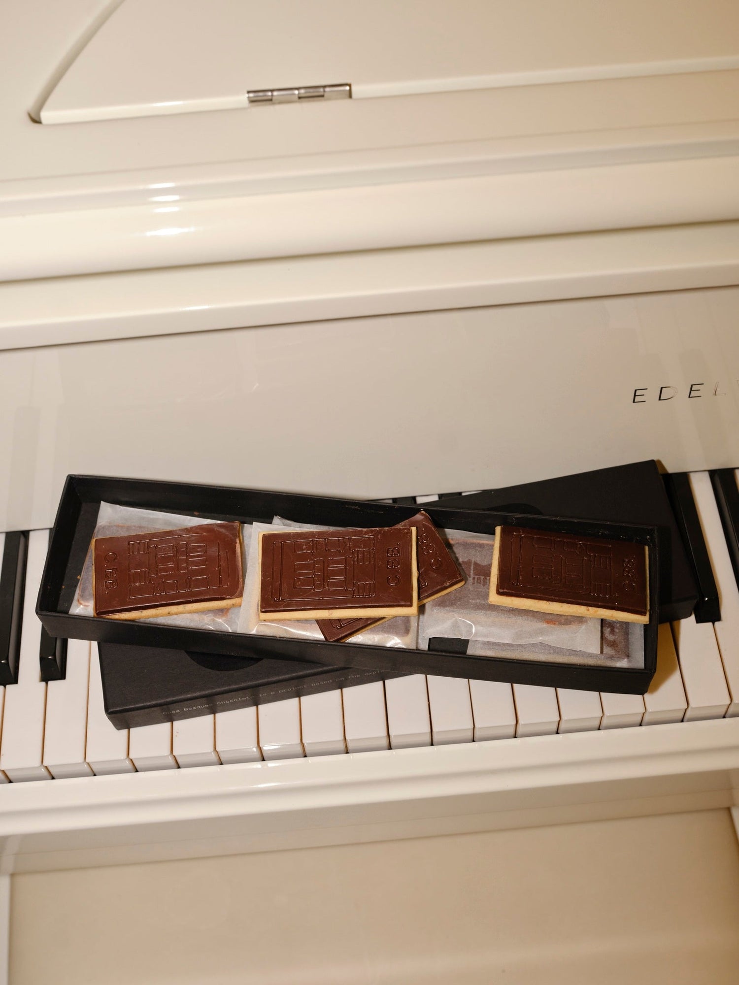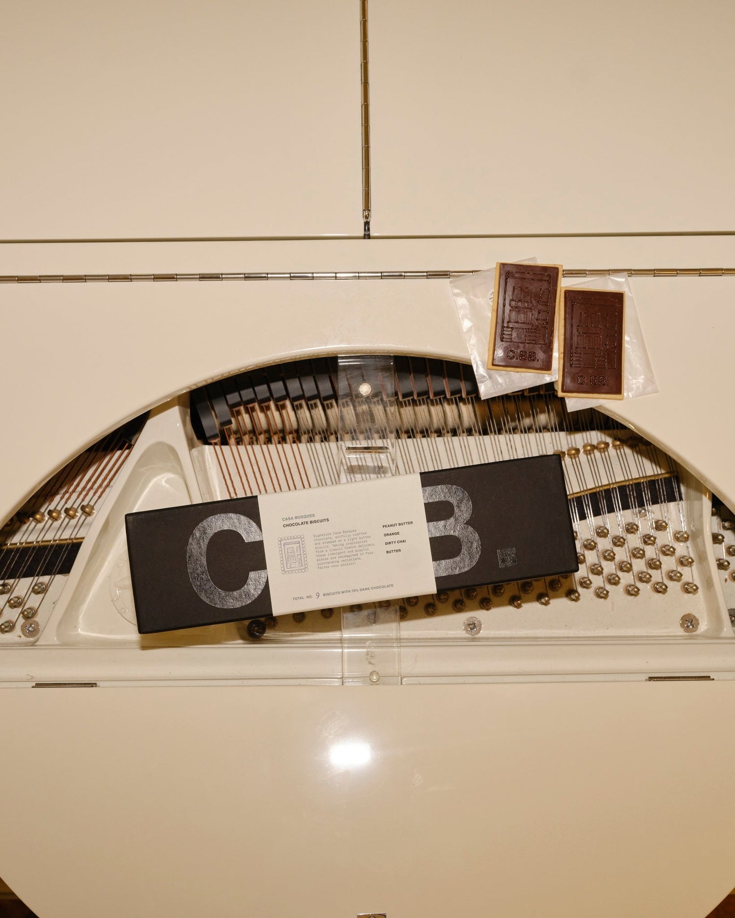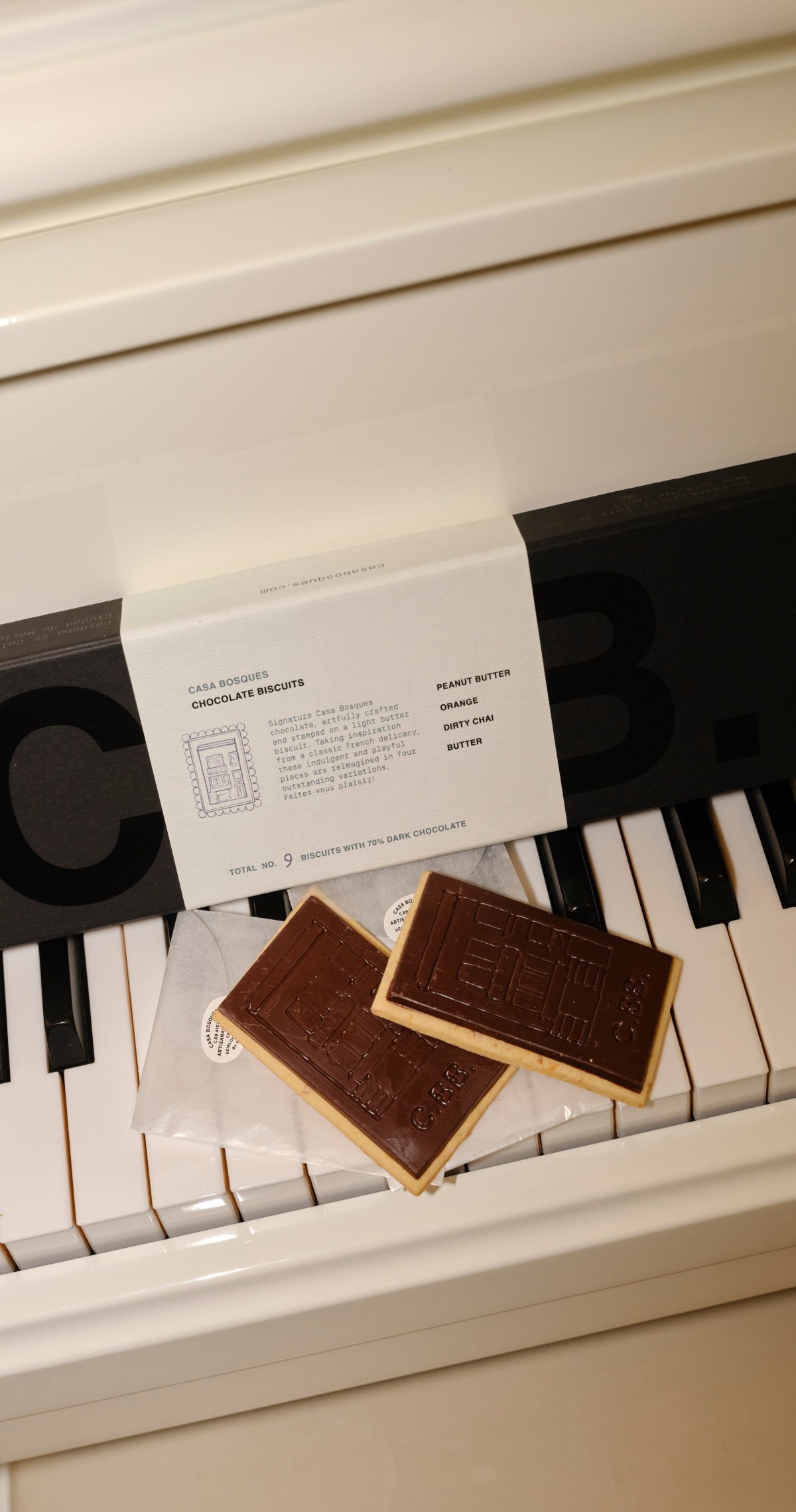 Signature Casa Bosques 70% dark chocolate, artfully crafted and stamped on a light butter biscuit.