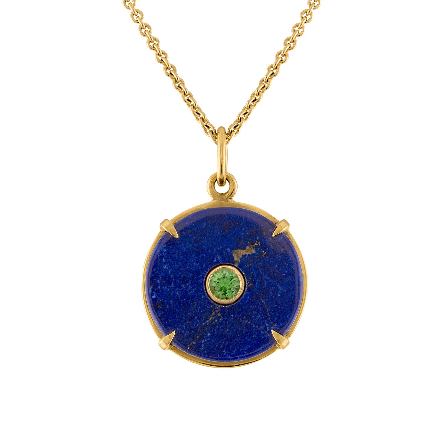 Available for immediate ship, the 18k gold Circle Pendant with Lapis is sold individually, without a chain. Pair it with classic and fine cable chains, or with a tether of your choice.