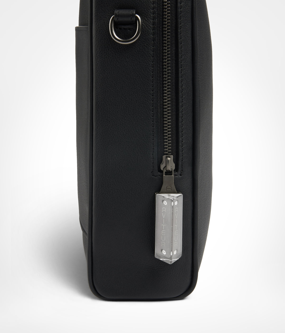 This soft briefcase combines refined design with everyday functionality. It features a padded laptop compartment, multiple interior and exterior pockets, and an adjustable shoulder strap for easy carrying. Finished with palladium-plated brass hardware and Aviteur's signature prism clasp, it's a polished essential for work or travel.