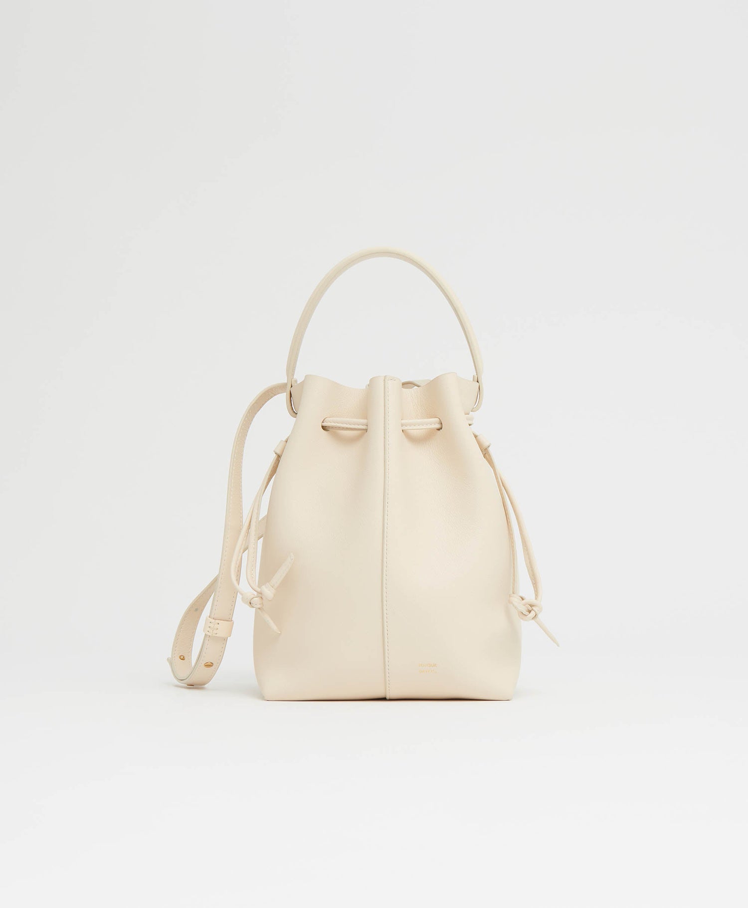 !!!Description---The Dea Bucket blends timeless Italian craftsmanship with minimalist elegance. Made from soft calf leather with suede lining, it features an open bucket design, drawstring closure, detachable crossbody strap, and top handle.