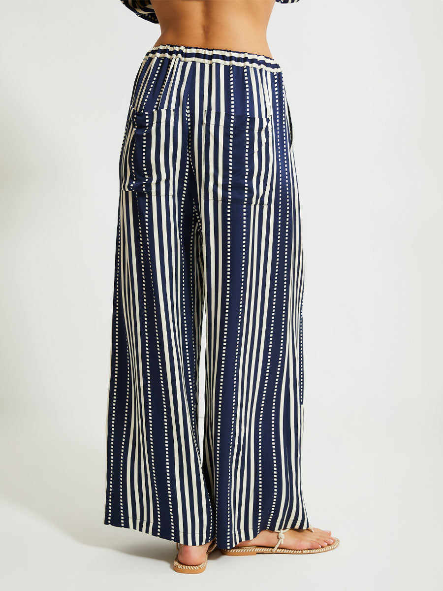 The Desta pants feature a wide, flattering leg and an elastic waistband for a comfortable, relaxed fit. Front and back patch pockets for a functional, laid-back vibe. The elastic waist offers a comfortable and secured fit.