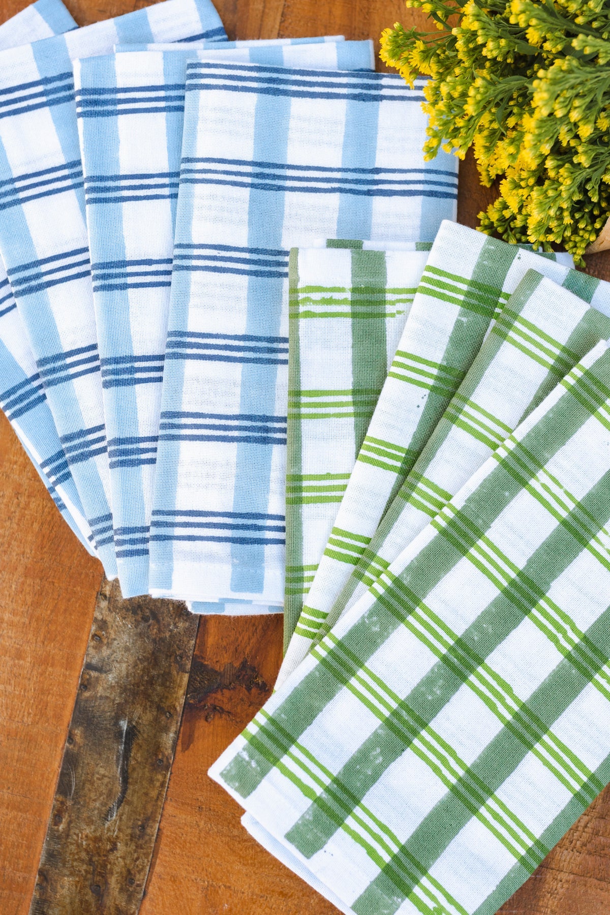 Dinner Napkins (Set of Four) in Plaid, Sage & Vine