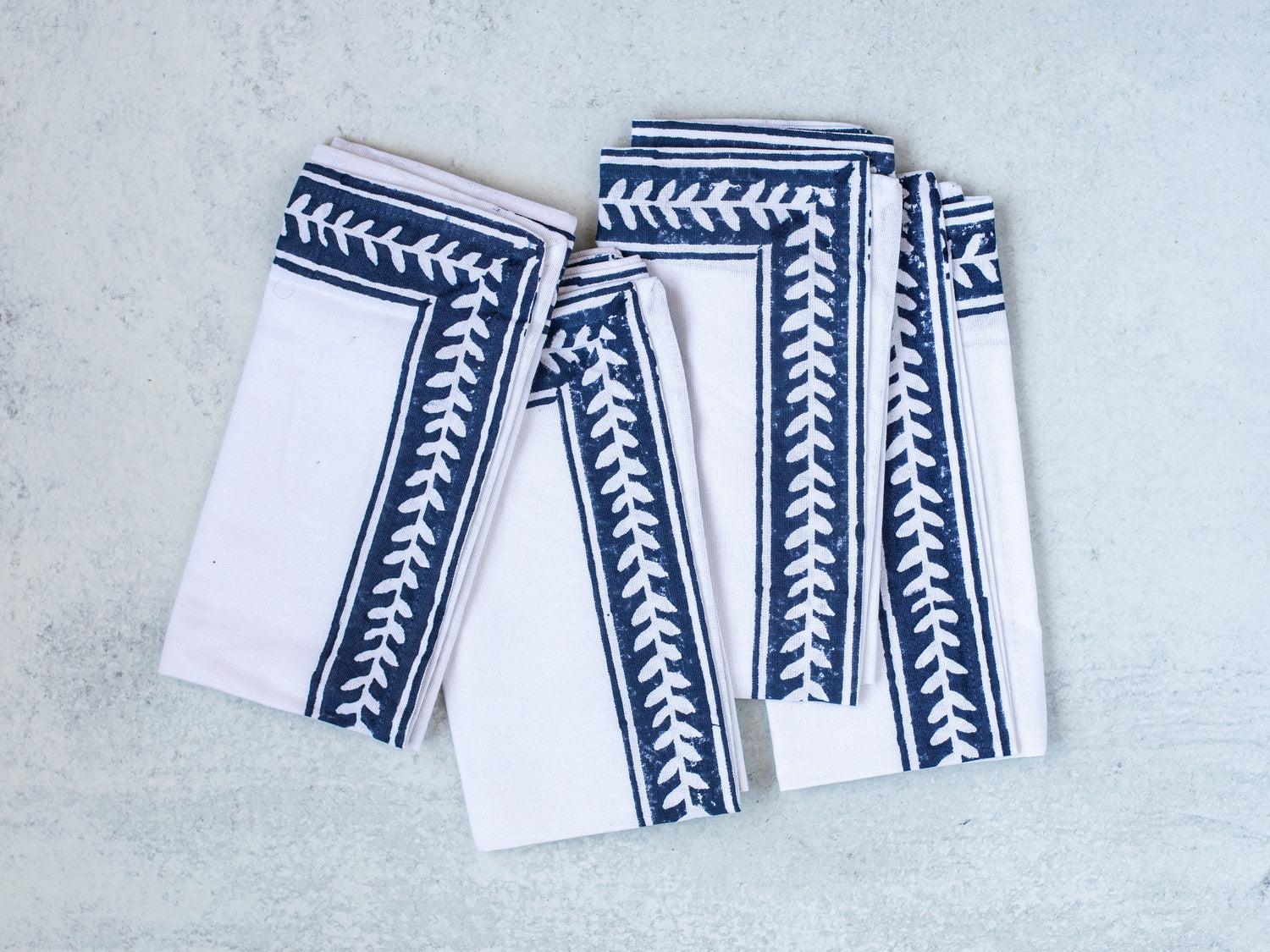 Dinner Napkins (Set of Four) in Vine Border, Navy