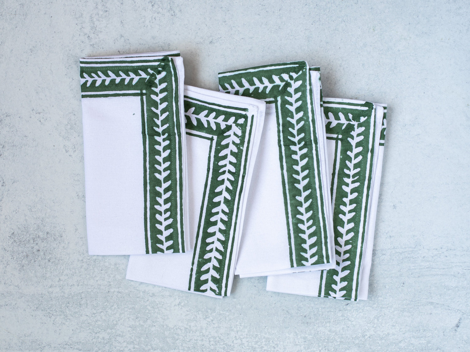 Dinner Napkins (Set of Four) in Vine Border, Sage