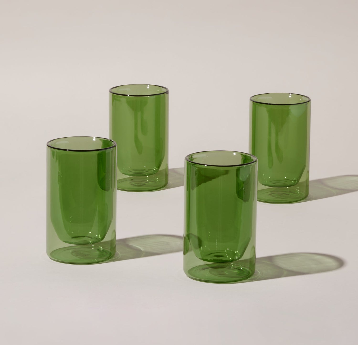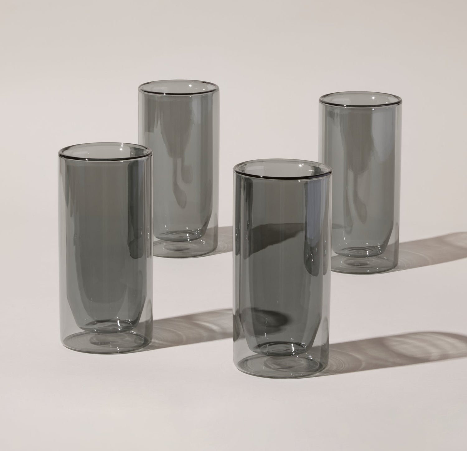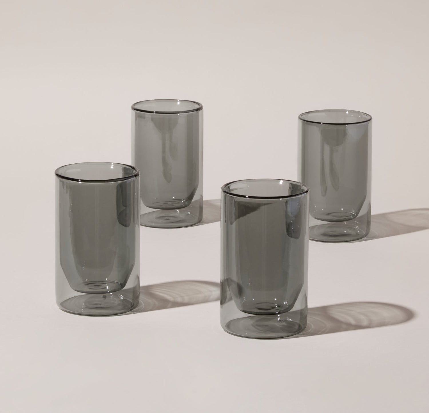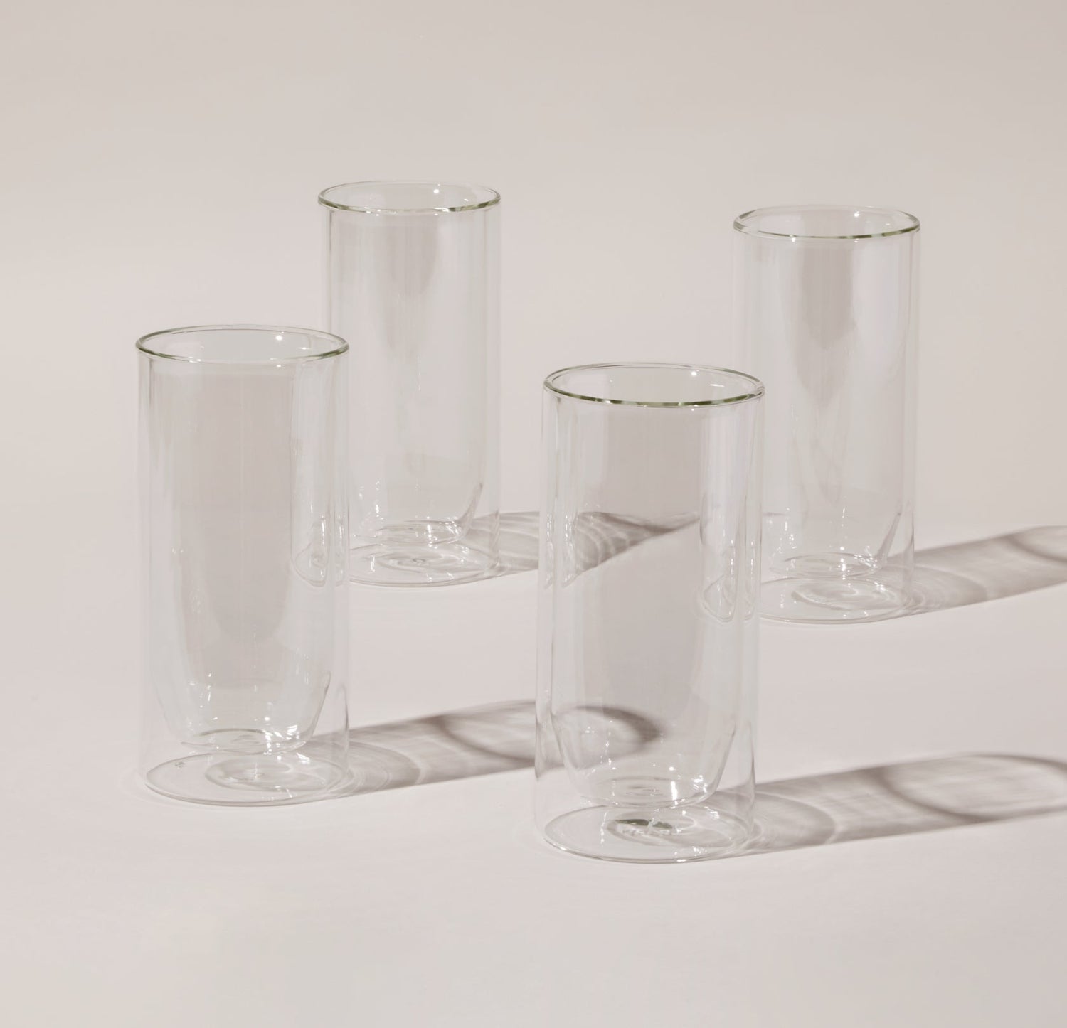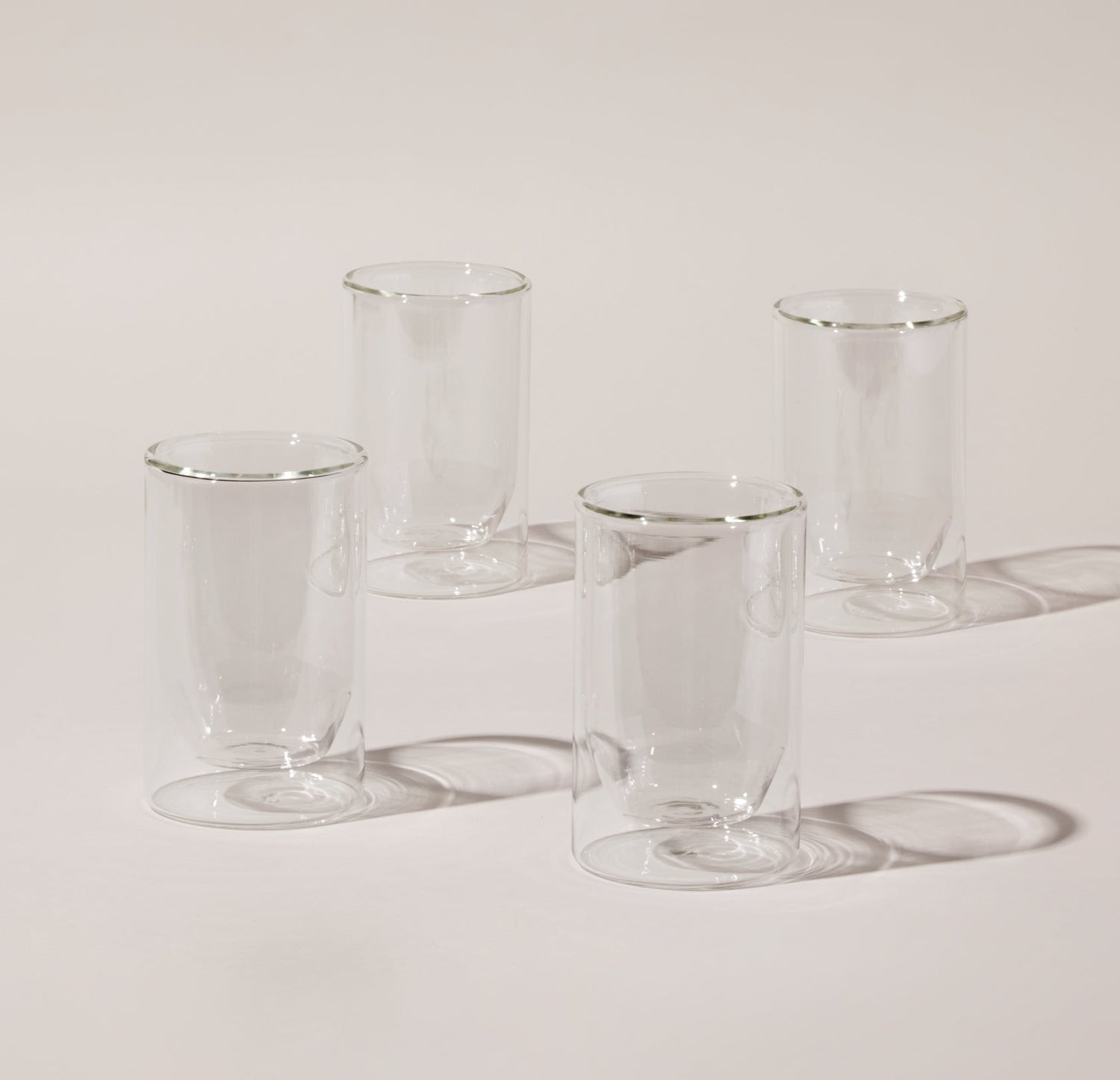The double-wall glass provides insulation suitable for use with hot or cold drinks.