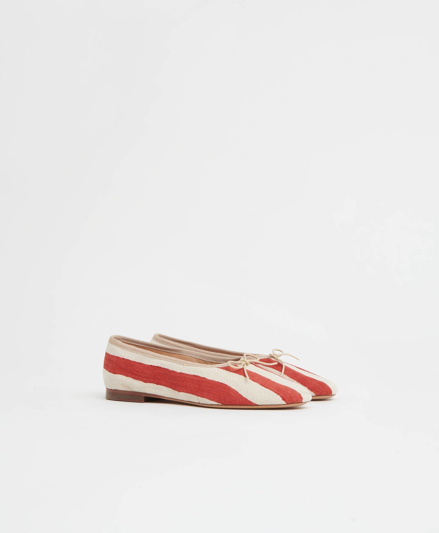 !!!Description---The limited edition Pascucci Ballerina is crafted from Italian canvas and minimally finished with a delicate bow and slim grosgrain trim. Stripes printed like brushstrokes are equally fit for the seaside or city.