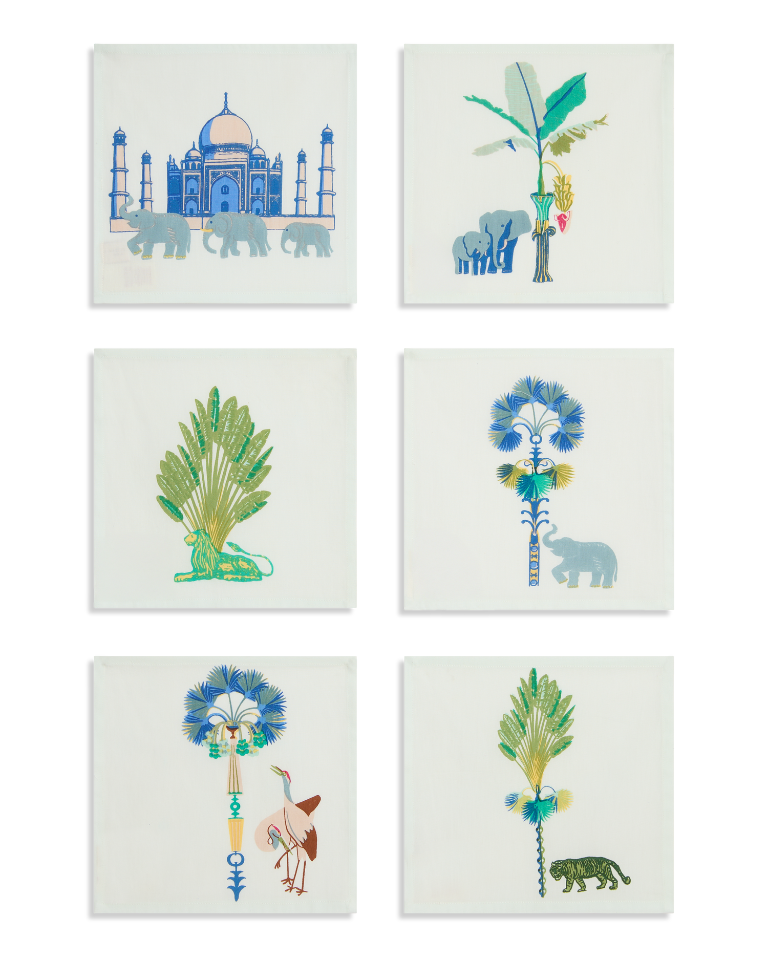 This set of six cocktail napkins features a charming elephant family design, adding a whimsical touch to any gathering or celebration.