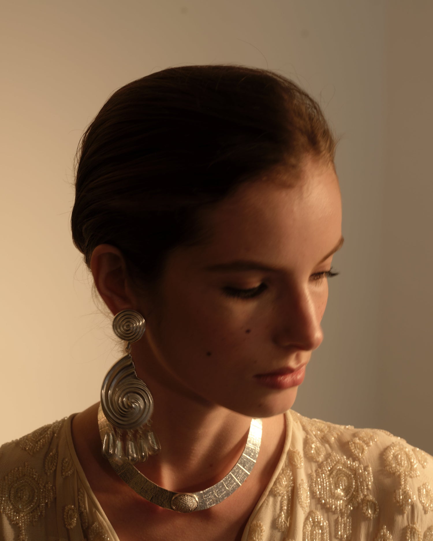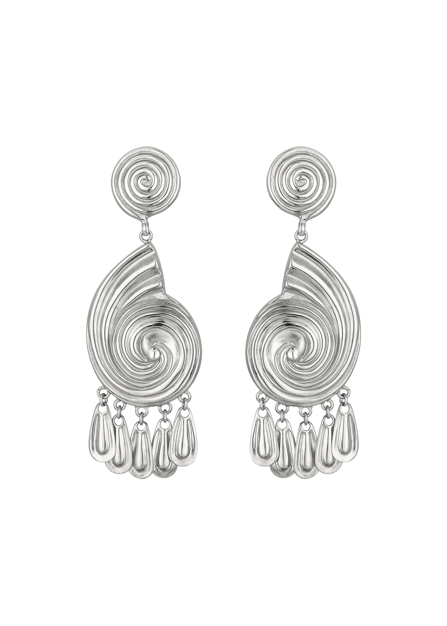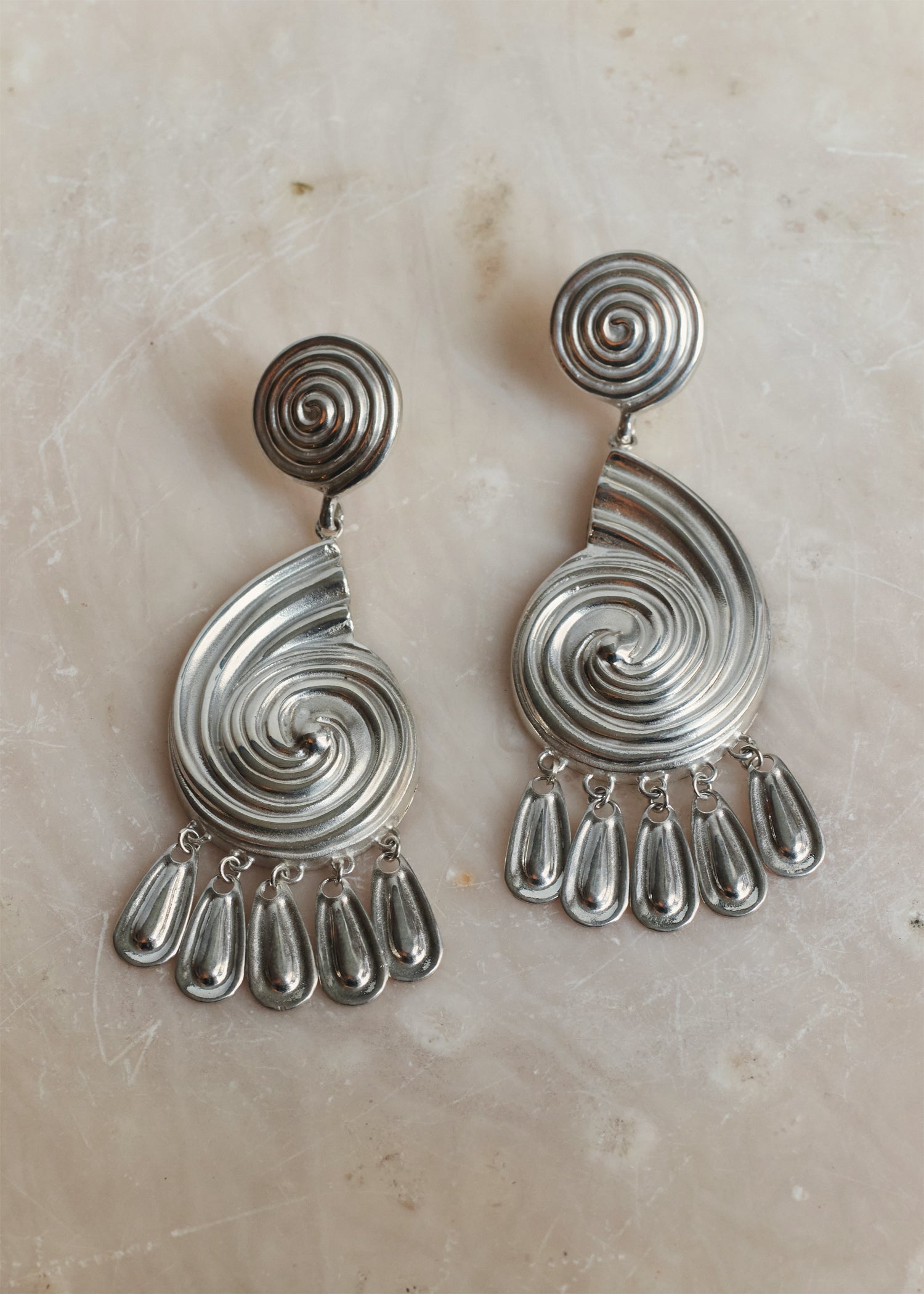 Handcrafted earrings intricately molded to echo ancient Mediterranean motifs, and adorned with delicate tassels. Artfully sculpted for lightweight comfort.