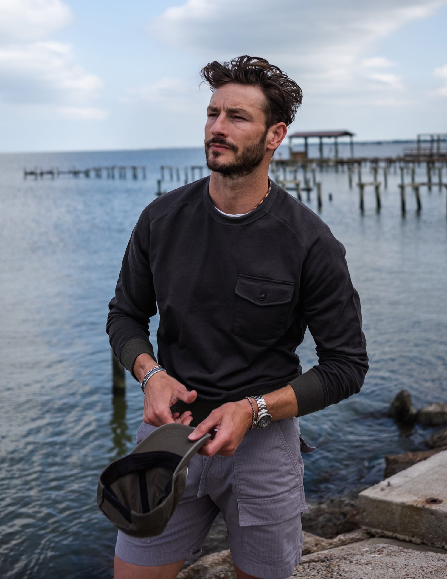 Fields French Terry Pocket Sweatshirt in Washed Black