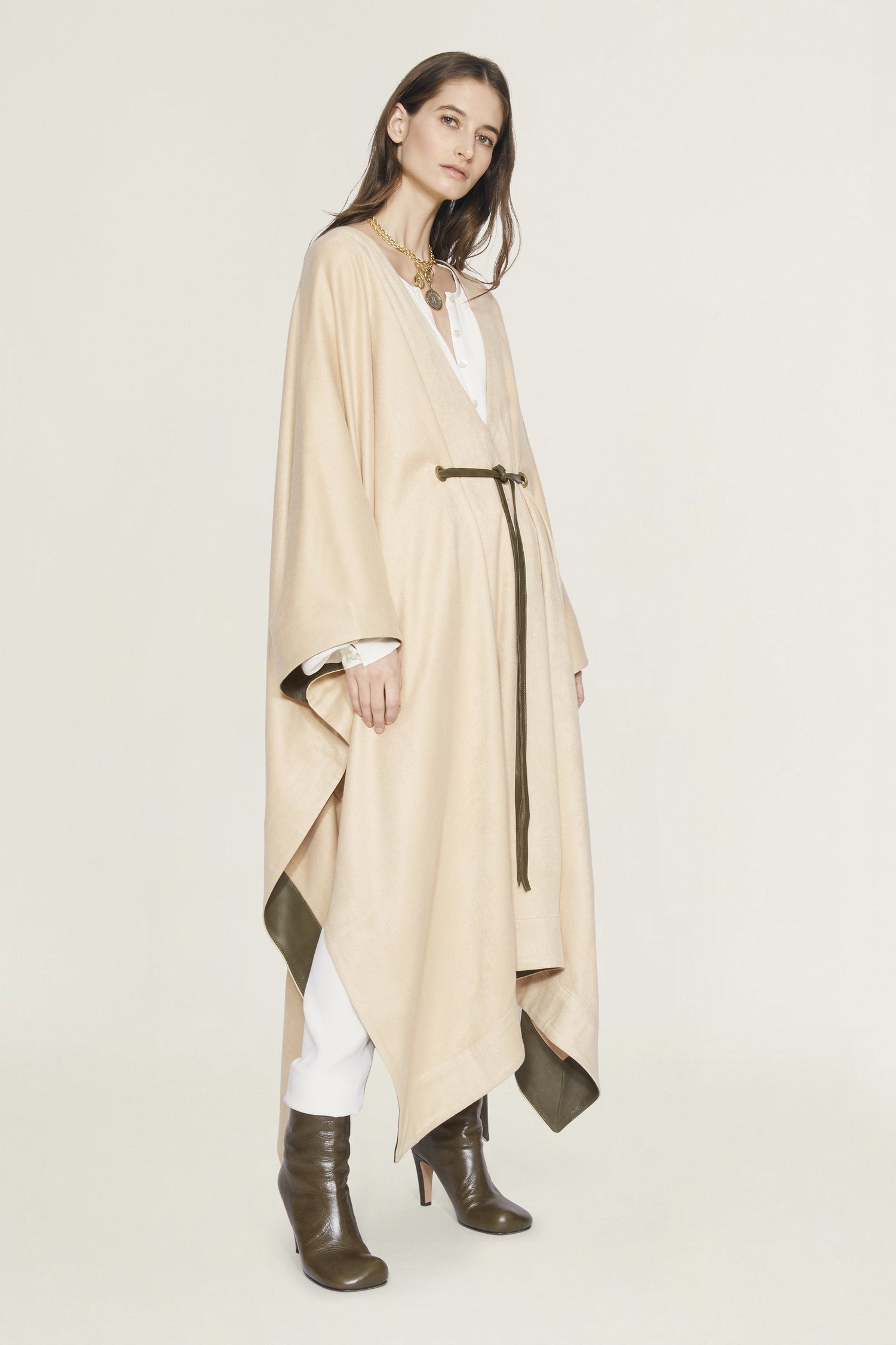 For those still fantasizing about Denis Villeneuve's Dune, swath yourself in yards of sumptuous cashmere with this striking caftan, which can be worn loose or cinched for a slimmer silhouette via a leather sash.
