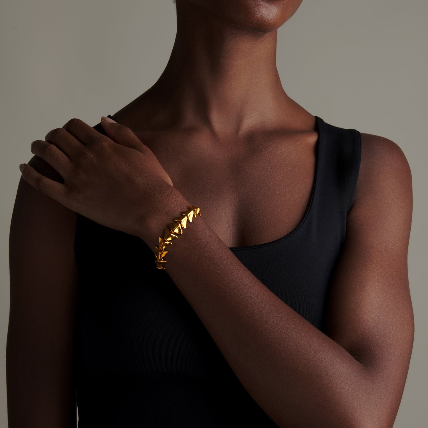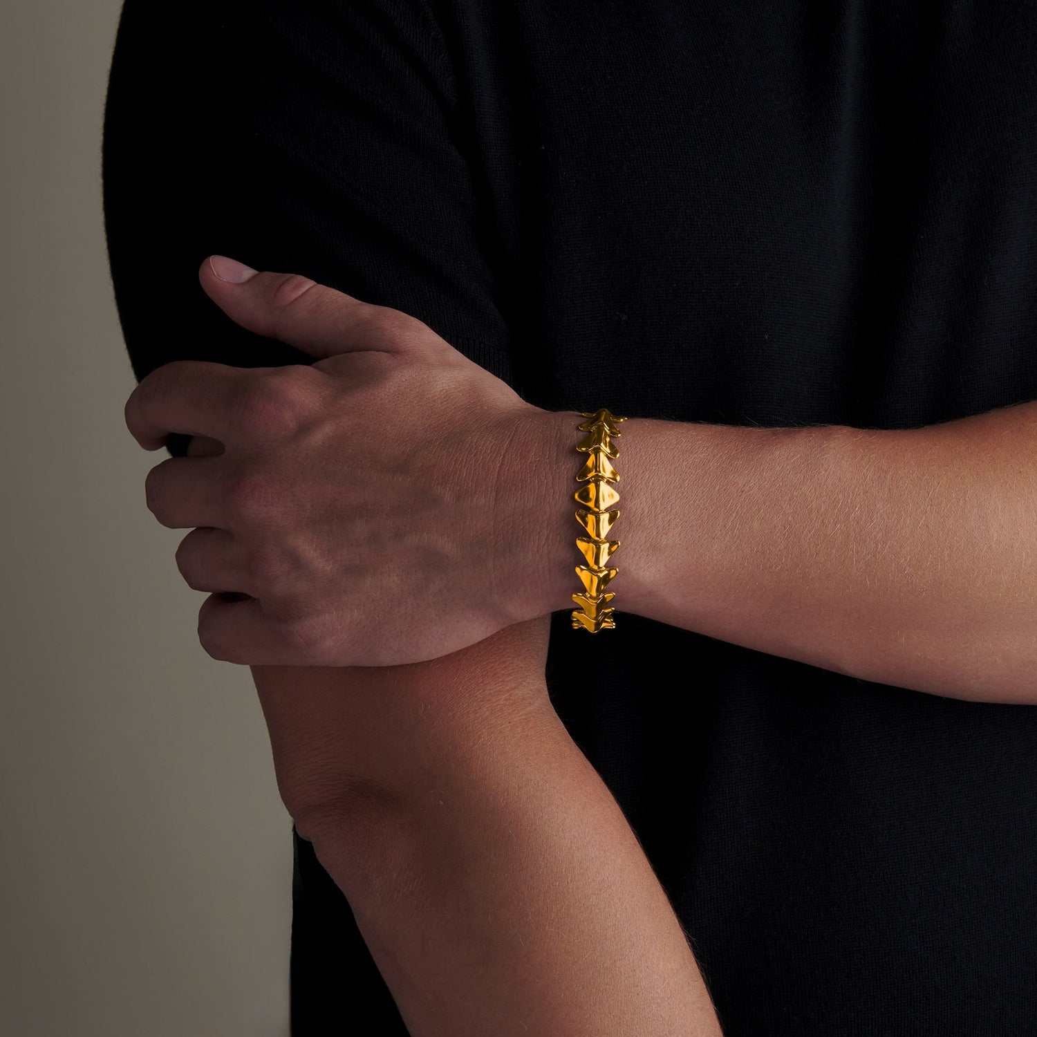 Embrace natural elegance with the Fishbone Bracelet. Inspired by the intricate structure of a fishbone, this bracelet features a series of delicately linked segments in 24k gold that create a captivating and unique design. The bracelet's flexible construction ensures a comfortable fit, making it perfect for daily wear or special occasions.