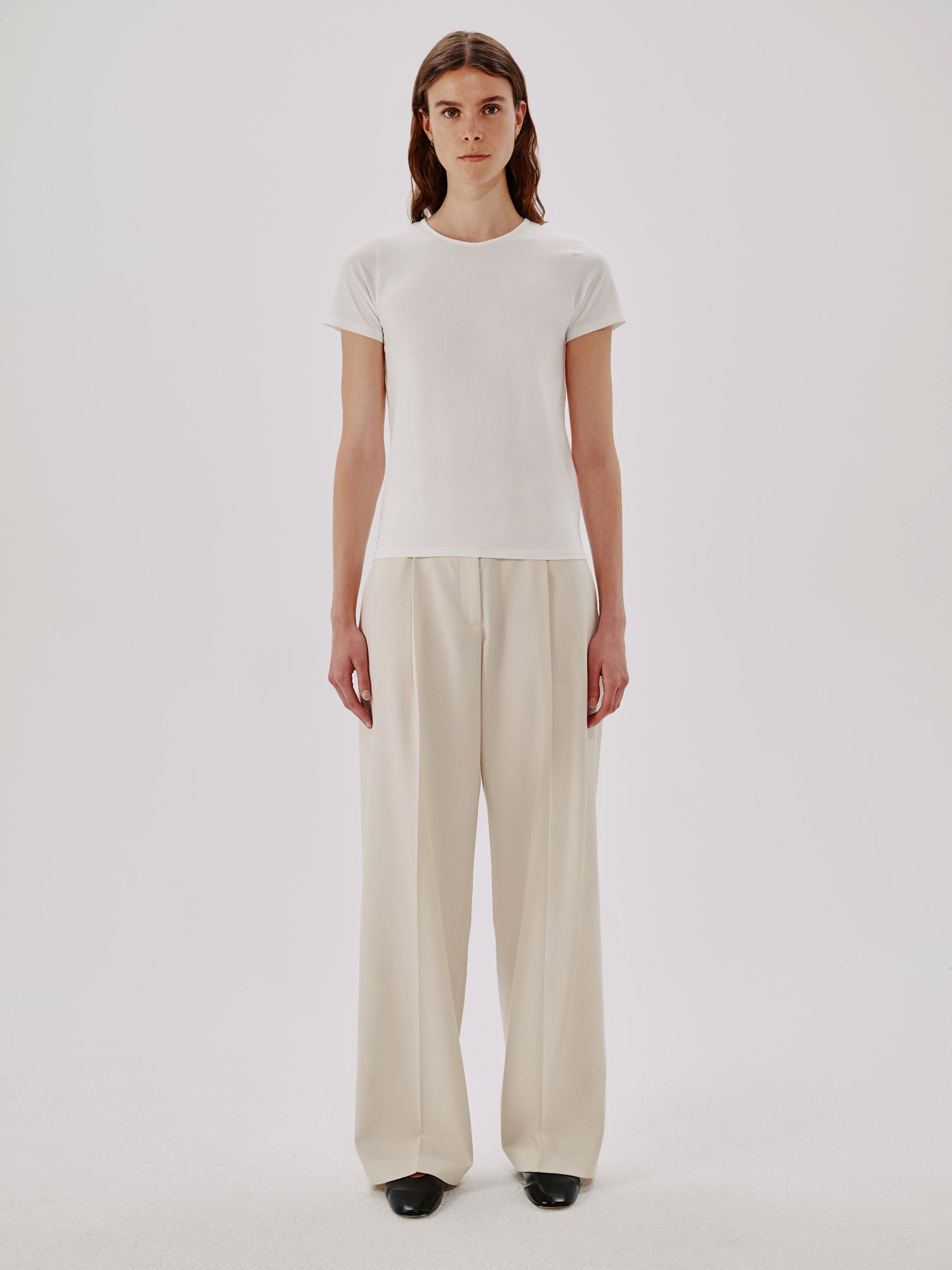 The Fitted Tee gives the classic t-shirt a sharper outline, cut close to the body for a clean, tailored look. Crafted in a soft organic cotton and lyocell blend with a touch of stretch, it holds its shape while moving easily with you. A wardrobe anchor that dresses up or down without effort, it layers seamlessly or stands confidently on its own. Simple, precise, and endlessly wearable.