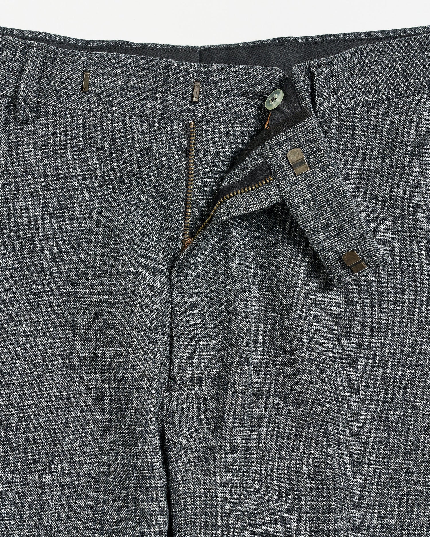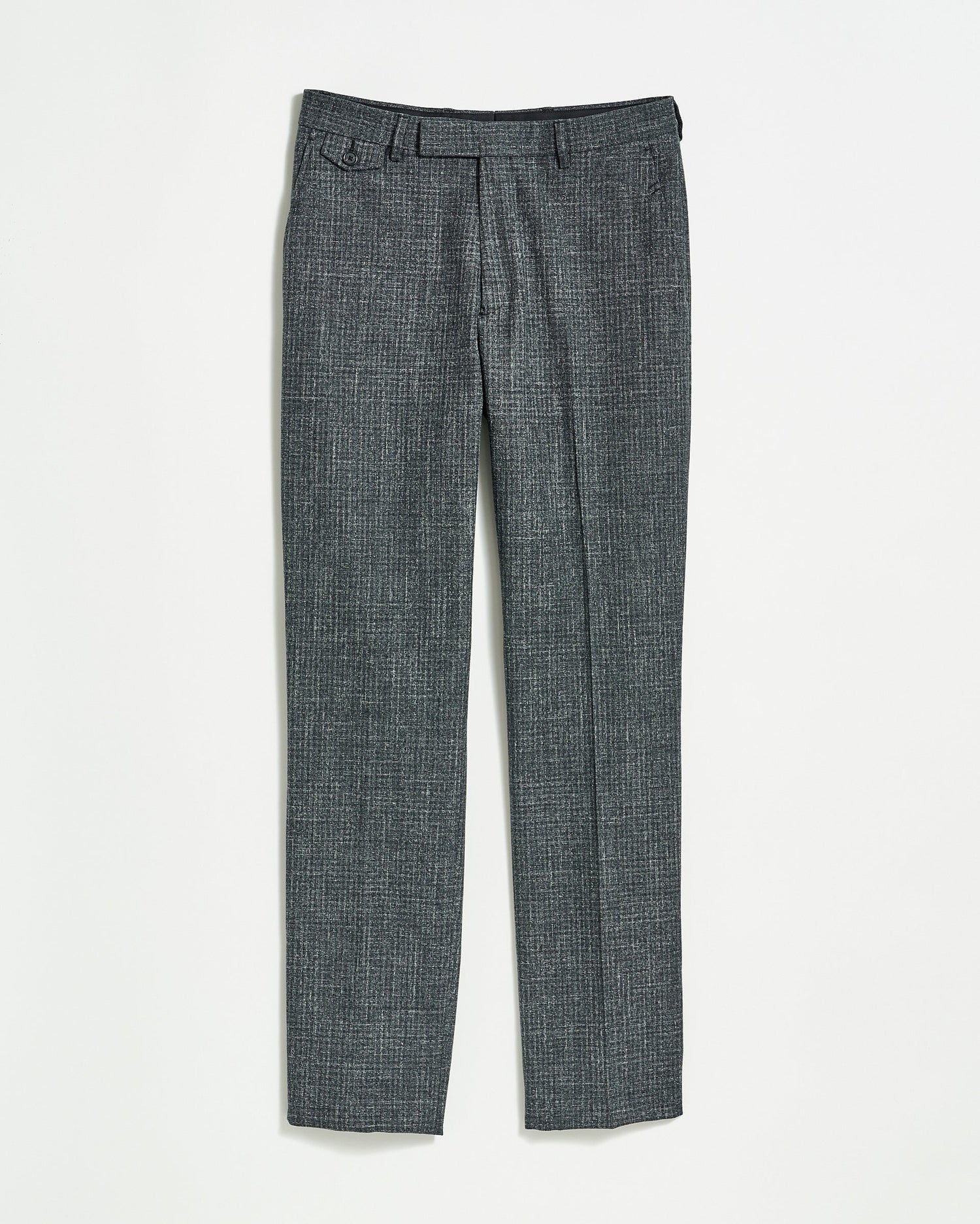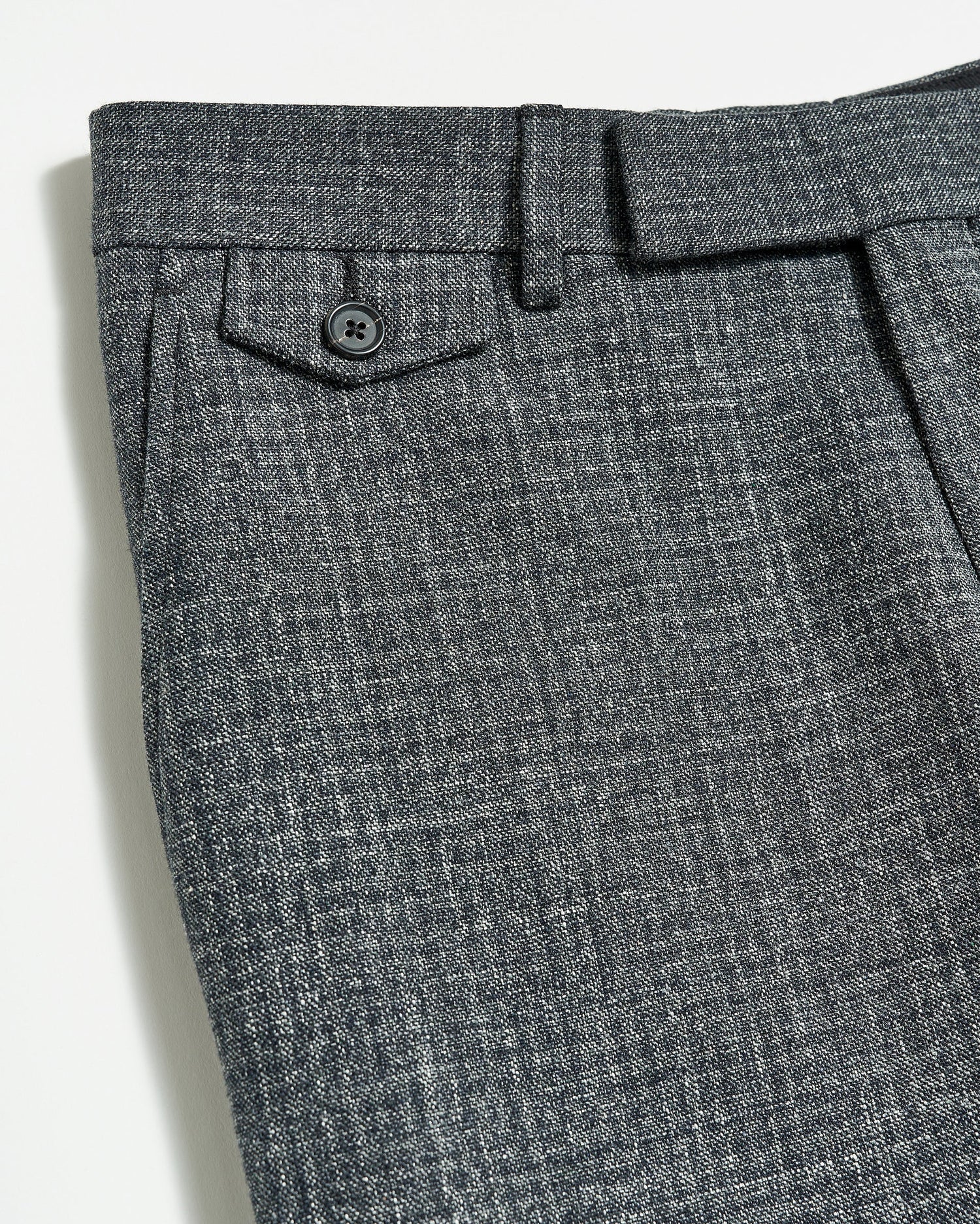 Our Flat Front Trouser, crafted in Italy, is a slim-fit trouser constructed from ultra-soft blended wool fabric in rich charcoal – a fabrication that wears beautifully all year long. It features two front slash pockets, one waistband watch pocket with a button flap, two rear welt pockets with button tabs, belt loops on the waistband, and our heirloom ribbon stripe detailing on the interior waistband for a subtle signature detail. Pair the Flat Front Trouser with its matching Archie Jacket for a complete look.
