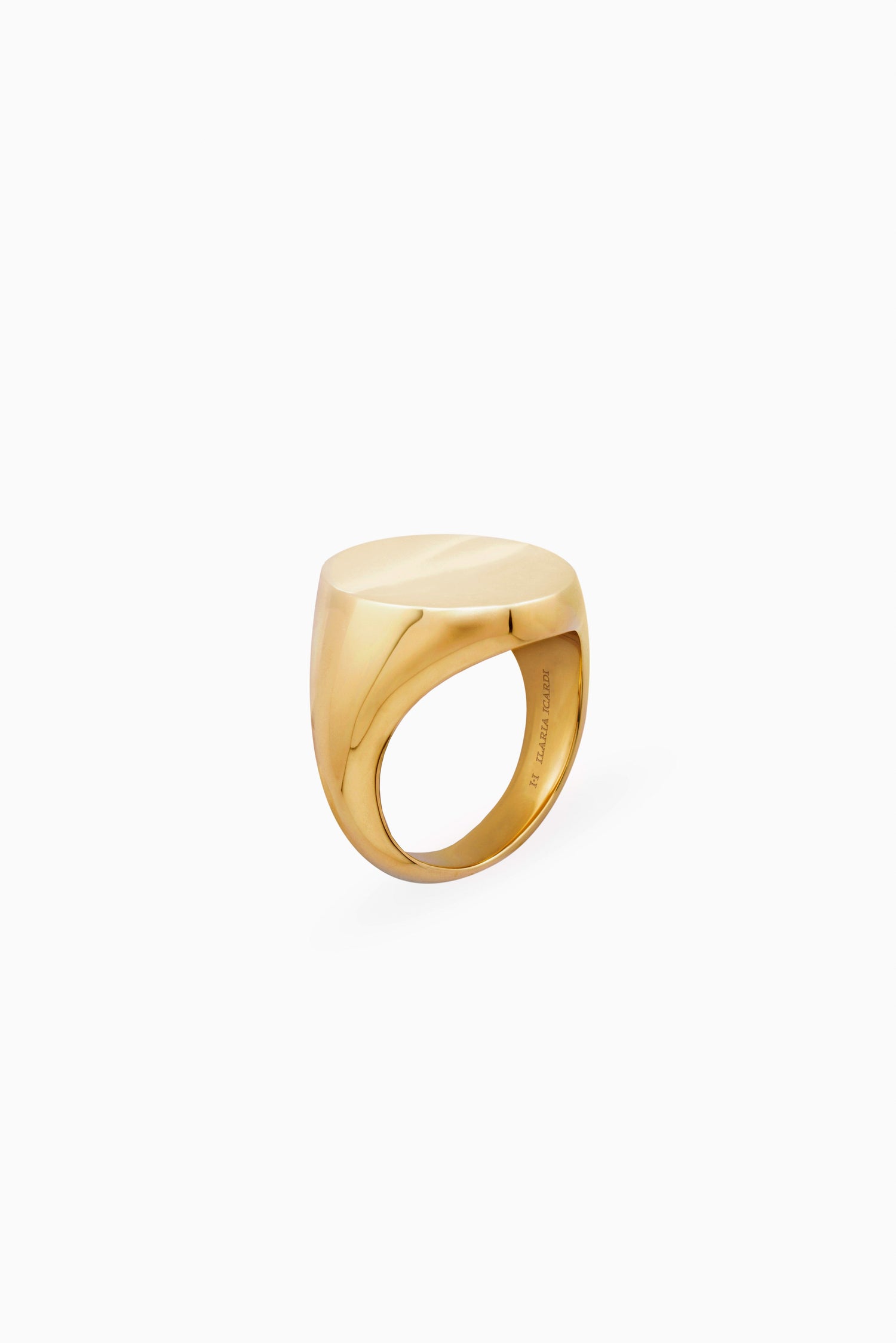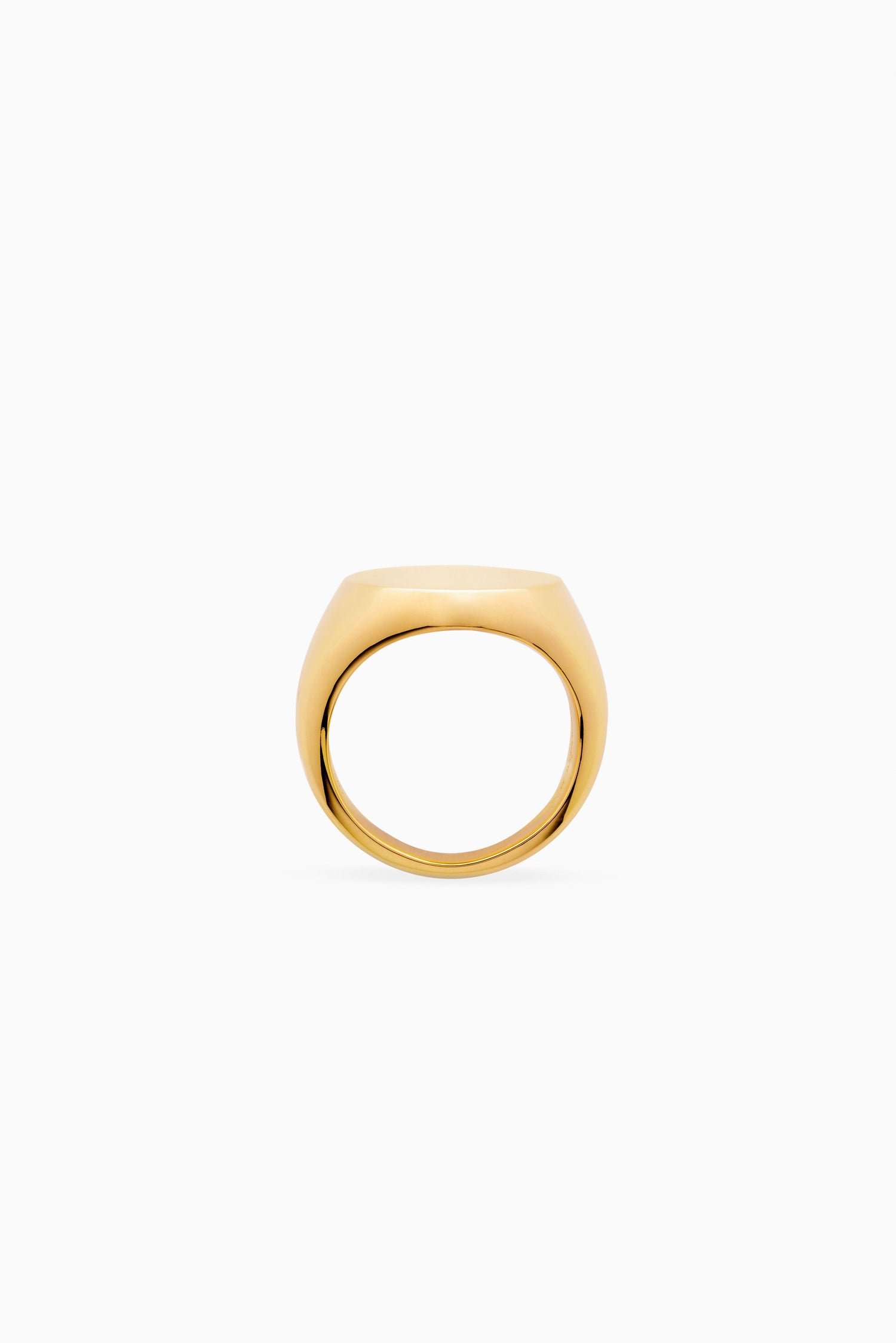 The Gold Cocktail Ring is made from pure 18 karat yellow gold and features a cushion signet design.