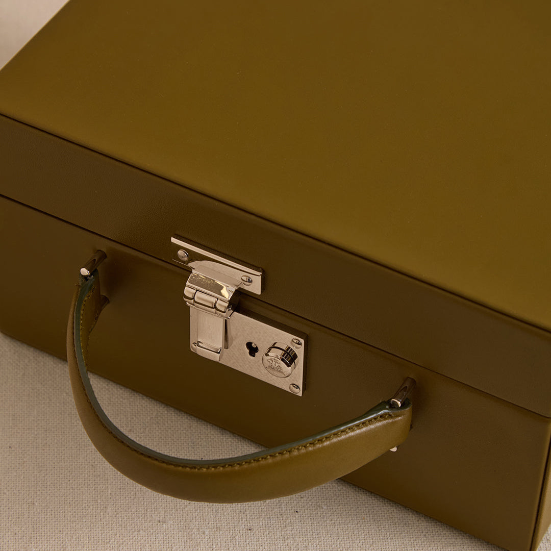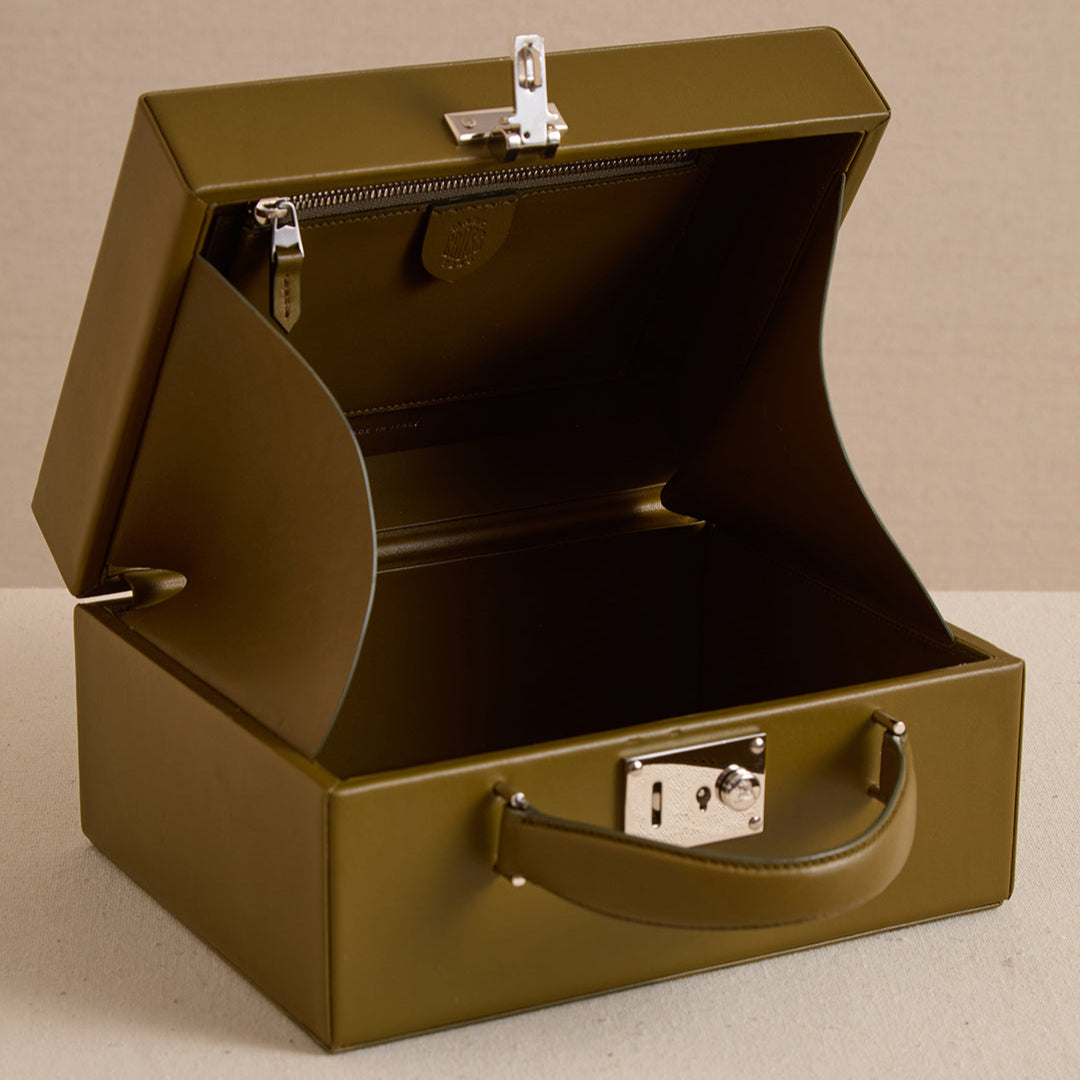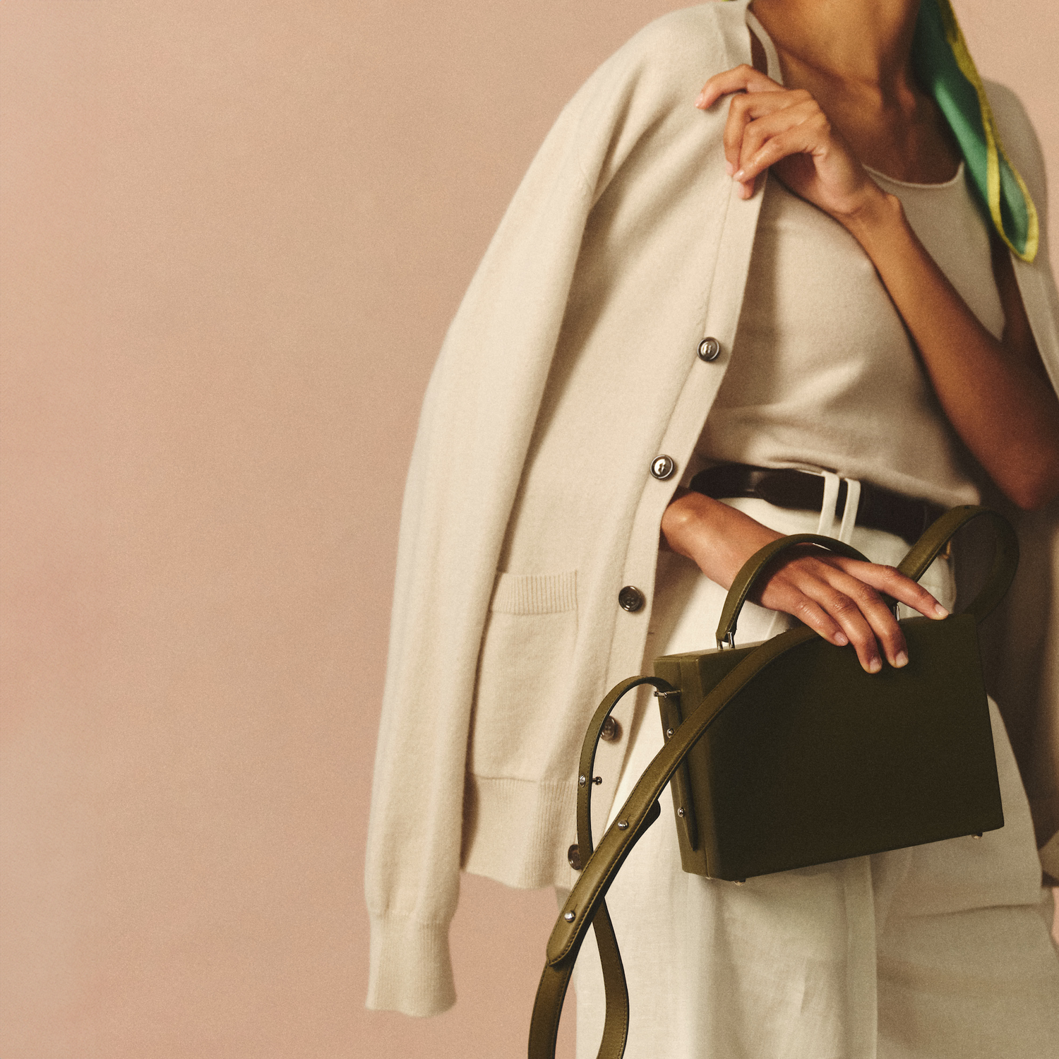 The Grace 21 is Mark Cross's calling card of quiet glamour. Handcrafted in Italy from supple calf leather in a deep Army green, its boxy silhouette nods to mid-century refinement while an interior zip pocket keeps the modern pace. Equal parts heritage and forward motion, it's the bag that proves elegance is always en vogue. Consider it an heirloom in the making, designed to age with grace. A companion piece for every season, from gallery openings to long weekends away.