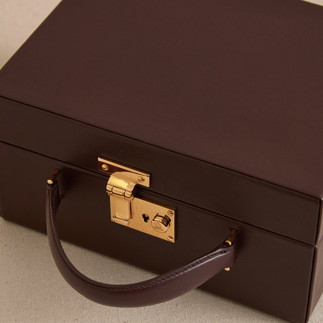 The Grace 21 is Mark Cross's calling card of quiet glamour. Handcrafted in Italy from supple calf leather in a rich Chocolate brown, its boxy silhouette nods to mid-century refinement while an interior zip pocket keeps the modern pace. Equal parts heritage and forward motion, it's the bag that proves elegance is always en vogue. Consider it an heirloom in the making, designed to age with grace. A companion piece for every season, from gallery openings to long weekends away.