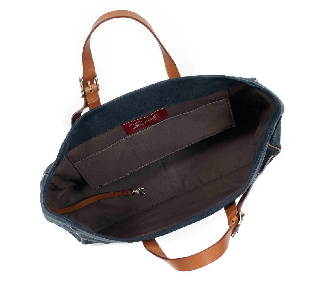 Introducing Chez Dede's signature tote-bag, entirely and carefully made in Italy with genuine Italian vegetable tanned calf leather and 100 percent natural silk-screened fabric.