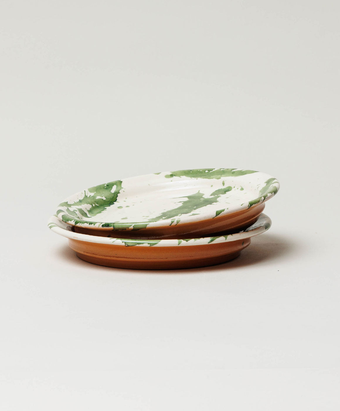 Handmade splatterware terra cotta side plate inspired by traditional Puglian ceramics provides a balanced punch of color and rustic charm to any tablescape. Perfect for side salads or dessert.