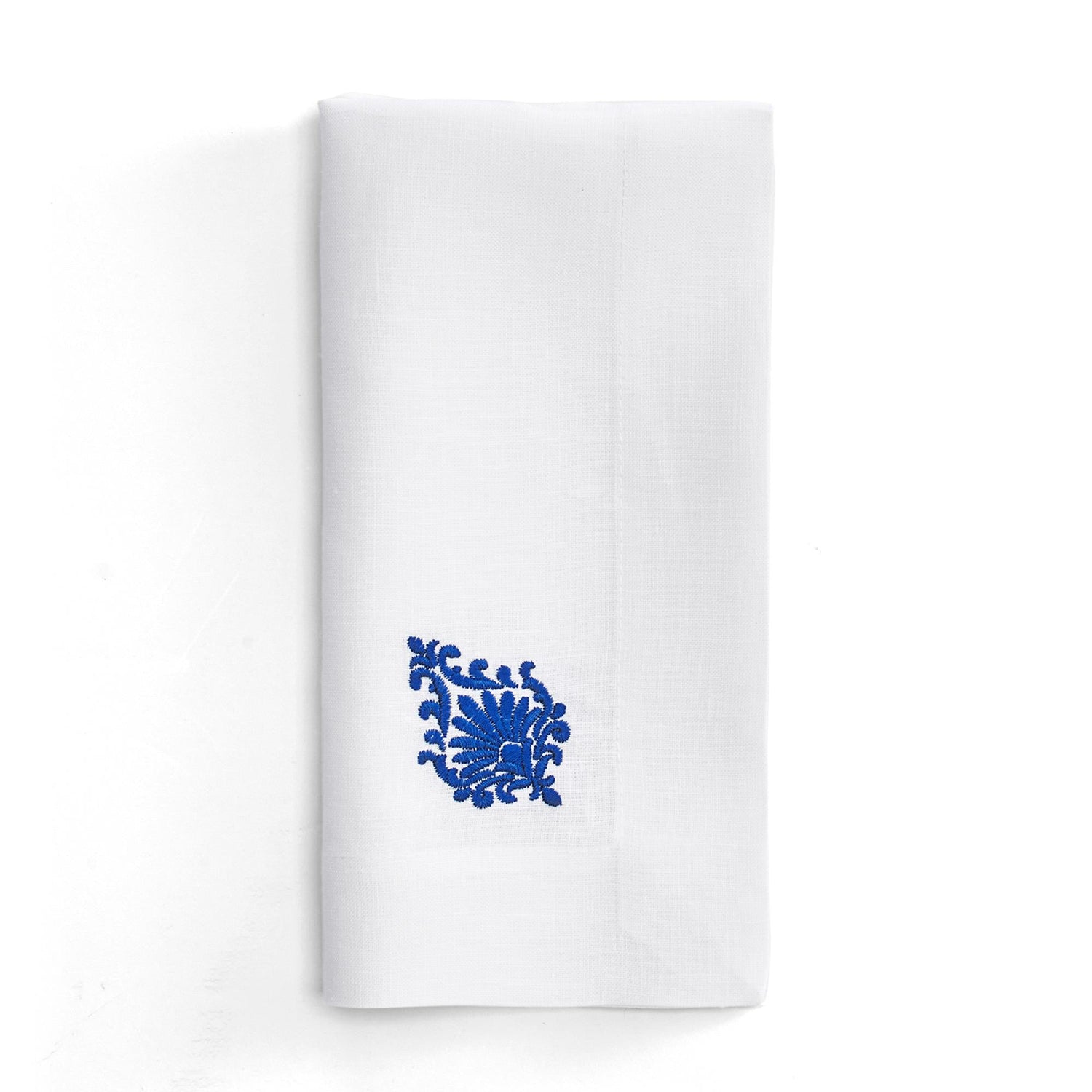 İznik Tile Flower Embroidered Napkin in Dark Blue