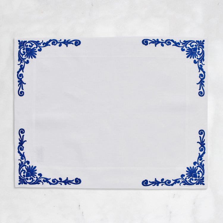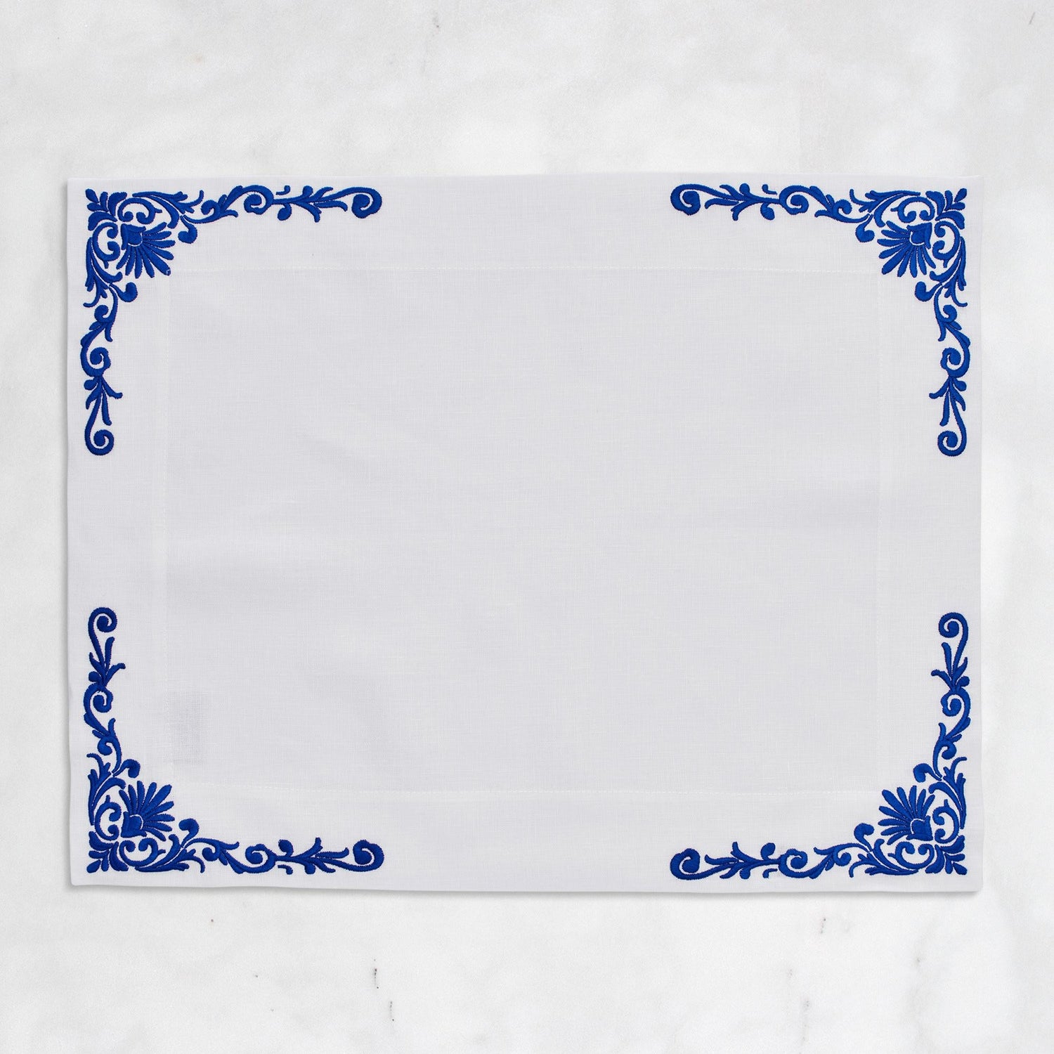 İznik Tile Flower Embroidered Placemat in Dark Blue