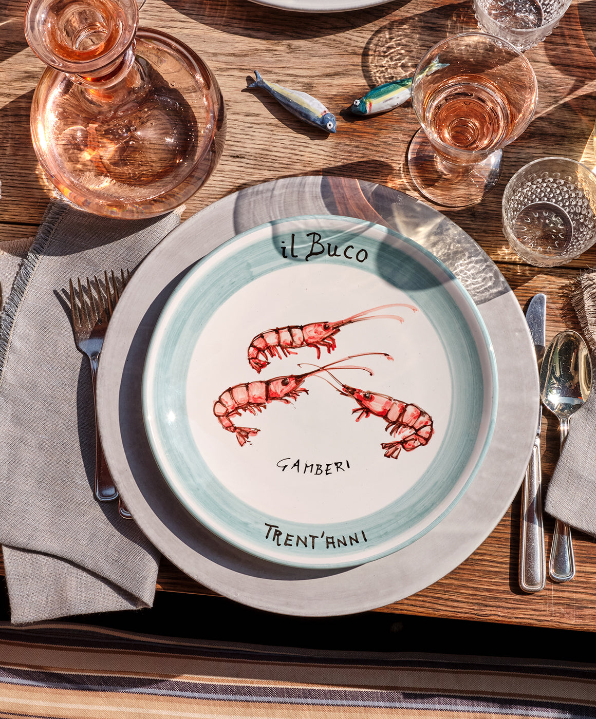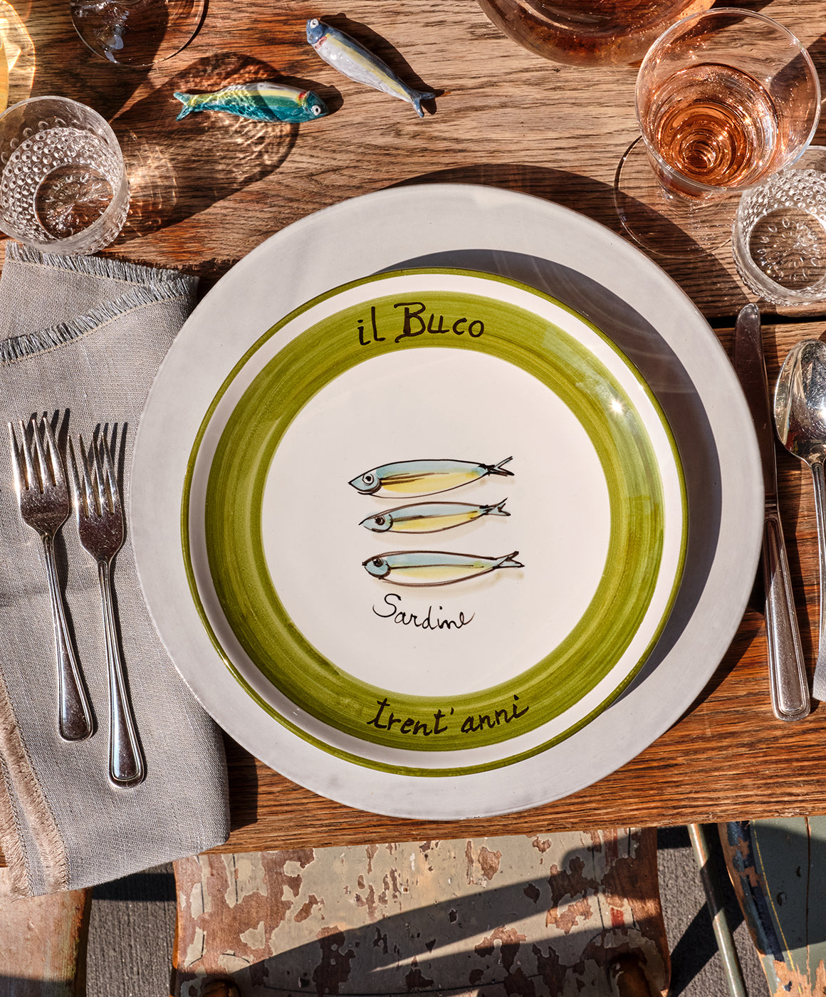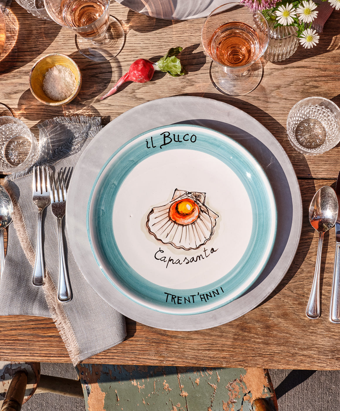 For Il Buco's 30th anniversary, we commemorated this experience by creating our Piatti del Buon Ricordo collection, featuring our signature dishes and specials. The anniversary plates are Antonello Radi’s interpretation of the restaurant's common themes: including the pig, sardines, scallops, radishes, and the famed storefront. The plate designs reflect our signature dishes and embody traditions that are synonymous with Il Buco over the years.