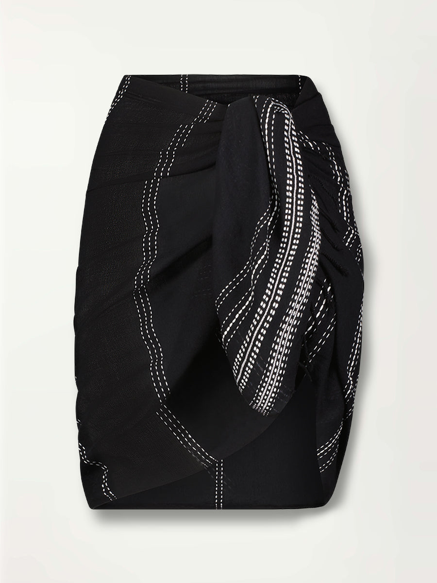This sarong is designed to be worn a number of ways: as a scarf around the neck; a cover-up tie around the chest; a pareo tied around the waist or laid flat as a beach blanket, this versatile style is a beach wear essential.