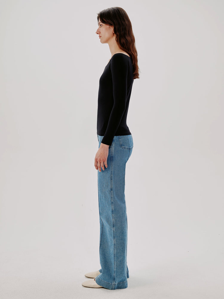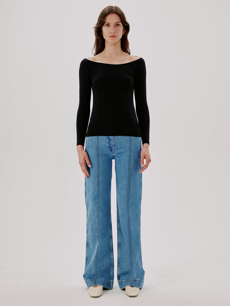 Nodding to the classic dancewear essential, Another Tomorrow's wide-necked Leotard Top forms to the shape of the body for everyday elegance.