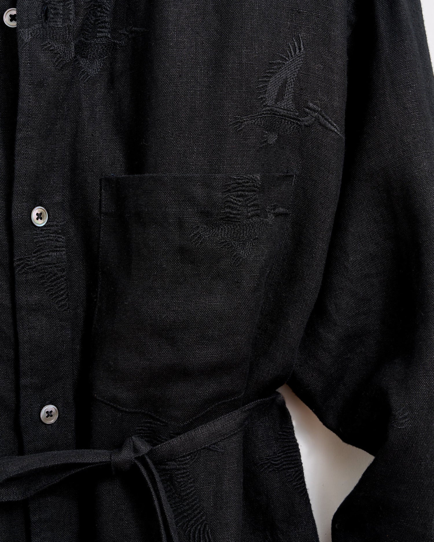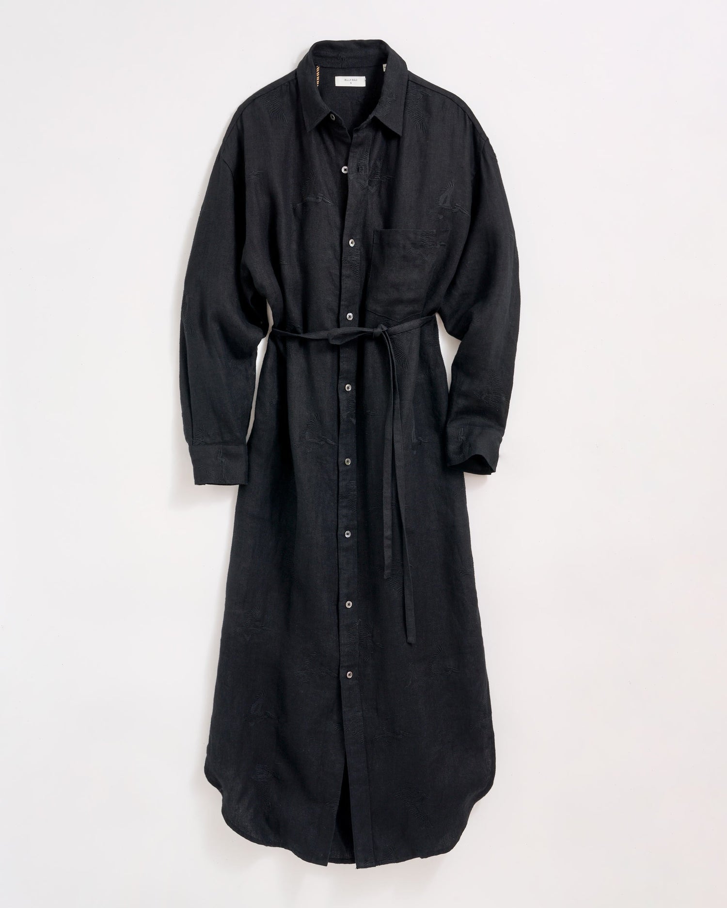 Pelicans are a part of the heritage at Billy Reid. They're the state bird of Billy's hometown of Amite, Louisiana, and appear everywhere from prints to liners in our clothes. For this maxi shirt dress, they've expanded it to feature the signature motif. It looks great buttoned up as a dress or worn open like a duster. The heavy linen fabric is extra soft but is perfect for warmer weather.