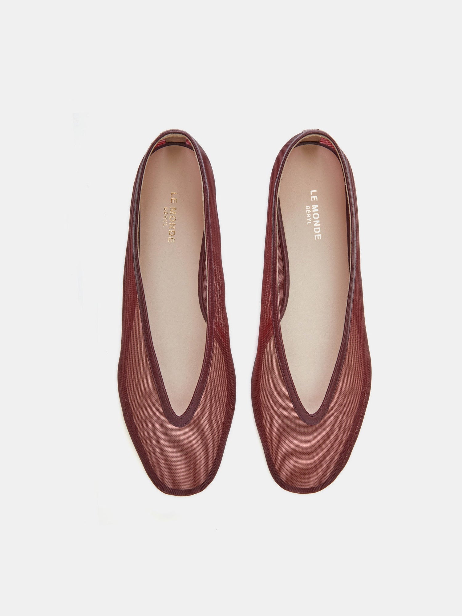 Luna Slipper in red mesh, with a cushioned calf leather insole and leather piping with a 8mm heel. Made in Italy.