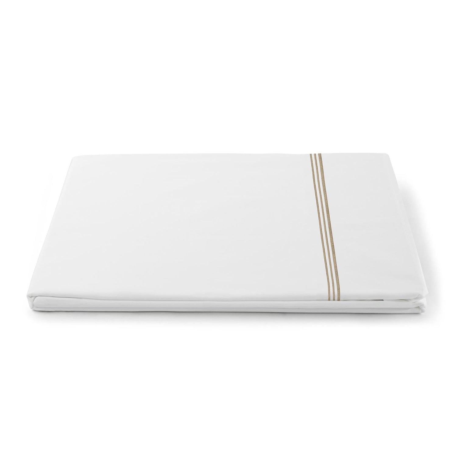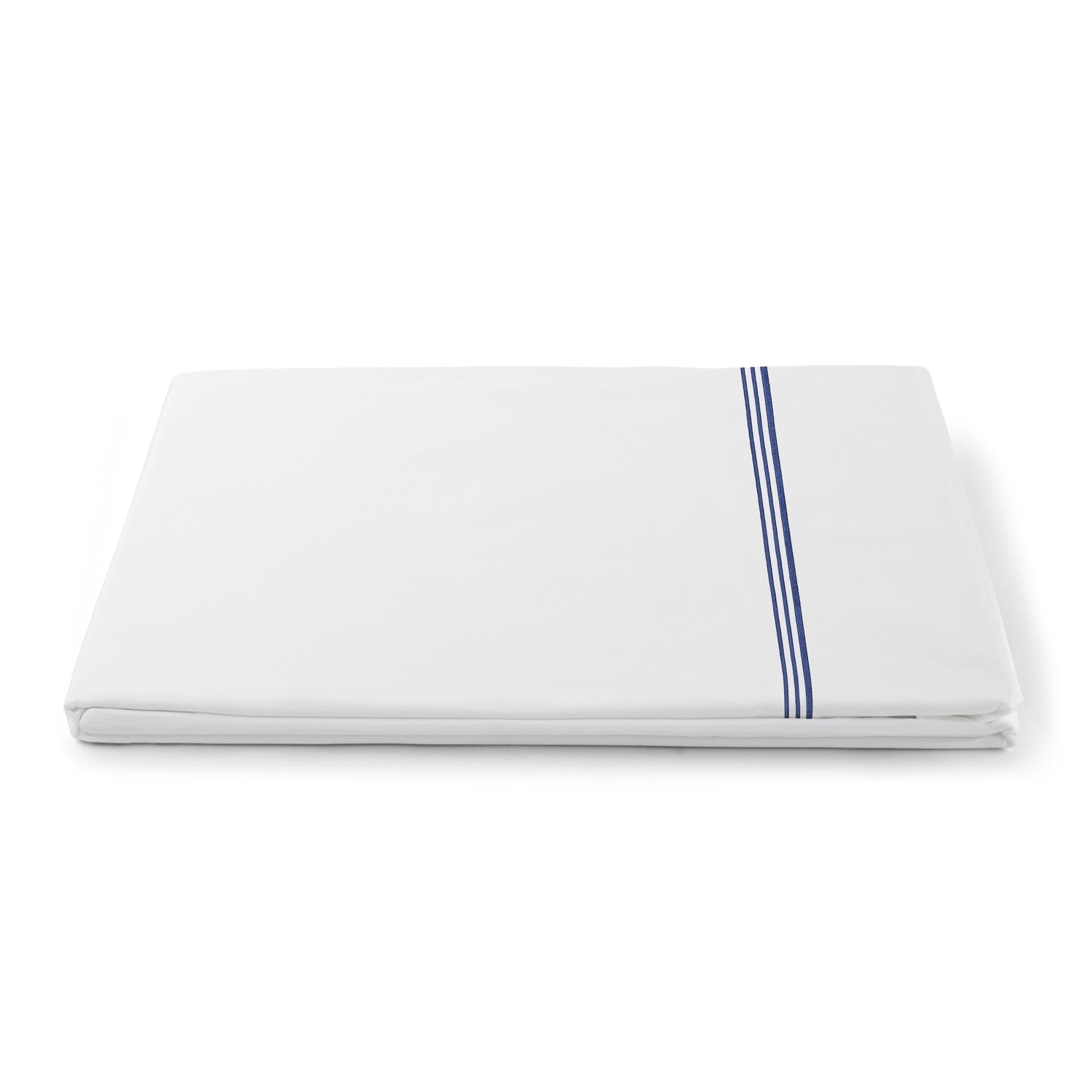 A flat sheet in cotton percale with a three row embroidery. Simple and timeless, this versatile design can be easily paired with any pattern. 100% Egyptian cotton percale. Made in Turkey.