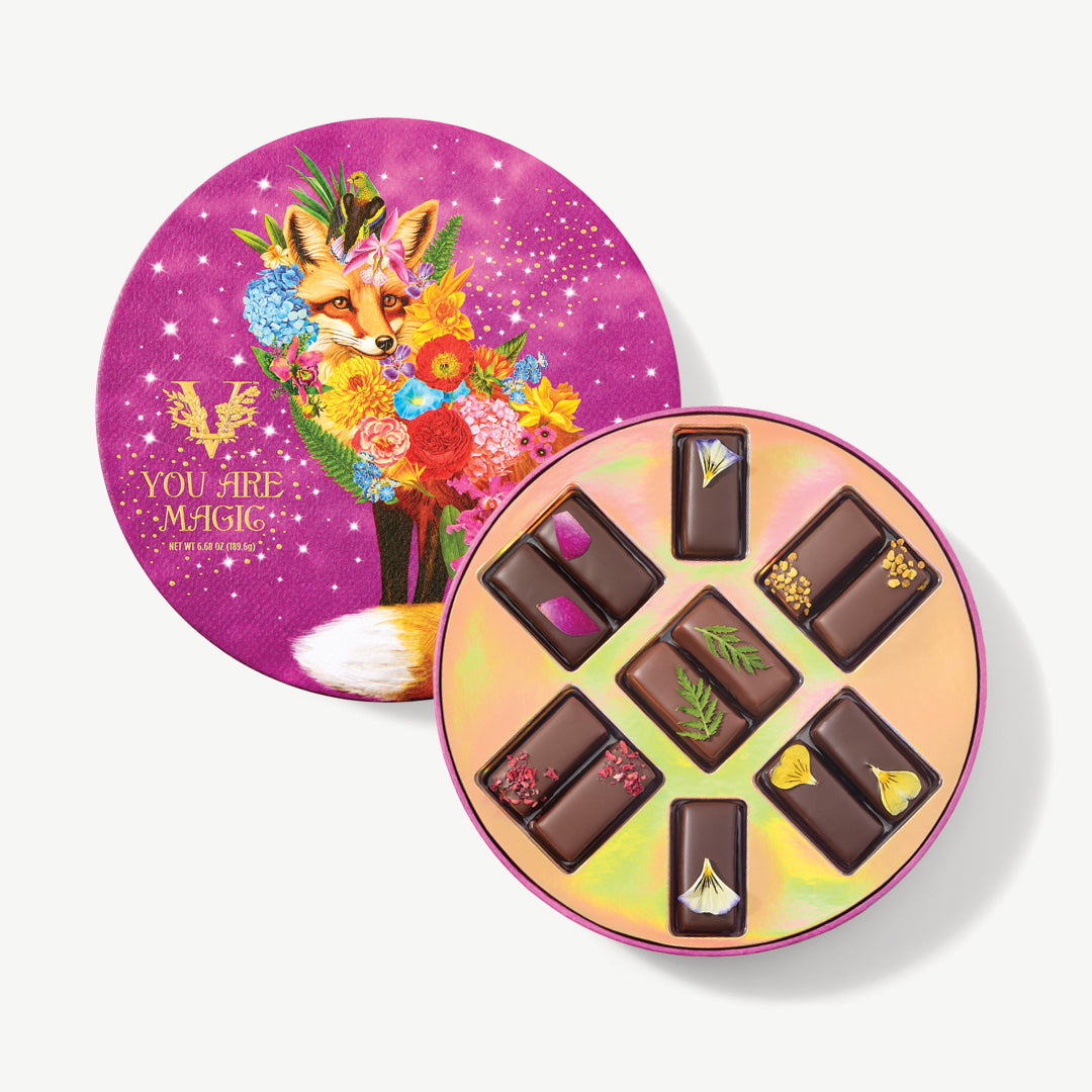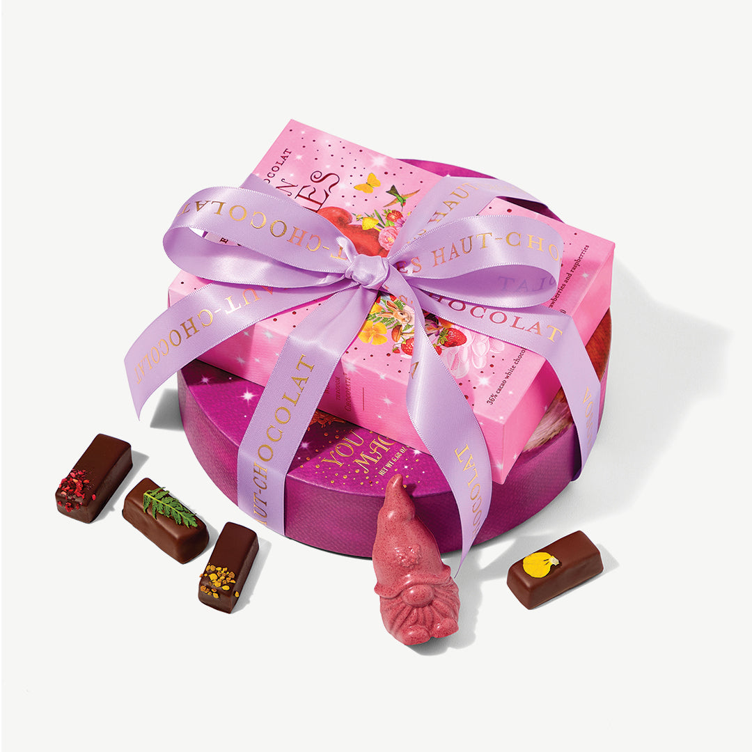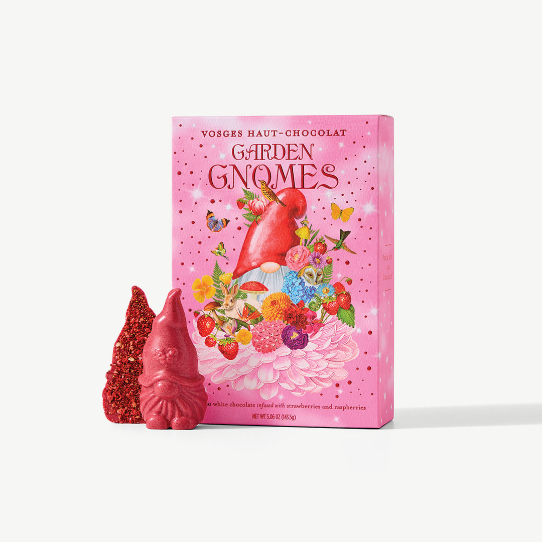 This spring, take a trip to the garden of chocolate magic with Vosges' Magical Chocolate Garden Tower- an elegant stack of limited edition haut-chocolat inspired by the season of renewal. Pull the ribbon's tails to reveal perfectly pink Strawberry Garden Gnomes, crafted with local strawberry, organic raspberry and 36% cacao butter white chocolate. Beneath these statuesque dainties lies You Are Magic Caramels—six unique caramel parfums crafted with fruits and superior sourced ingredients that color and sweeten this season's celebrations.
