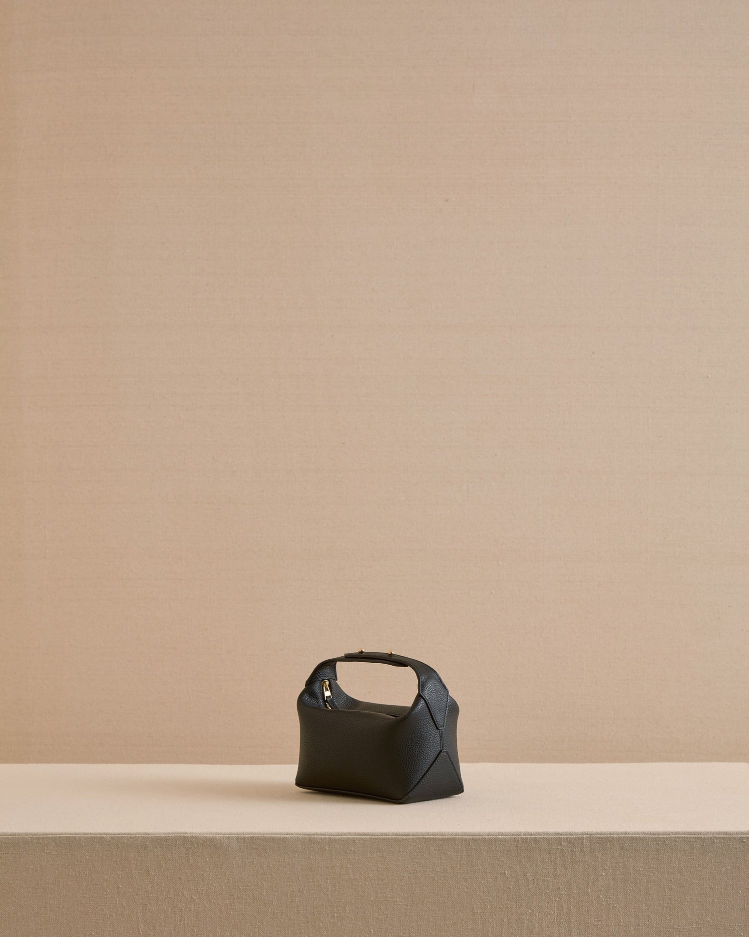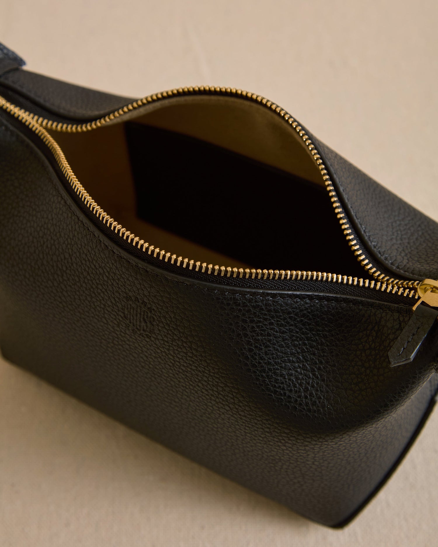 The Mason 17 is designed to be carried over the wrist or scrunched in the hand as an easy, effortless day clutch. Black Tumbled Grain Calfskin leather lends itself to a soft, slouchy silhouette, while signature Mark Cross collar studs bring a touch of elevation to a casual shape. Lined in soft lambskin suede in natural beige.