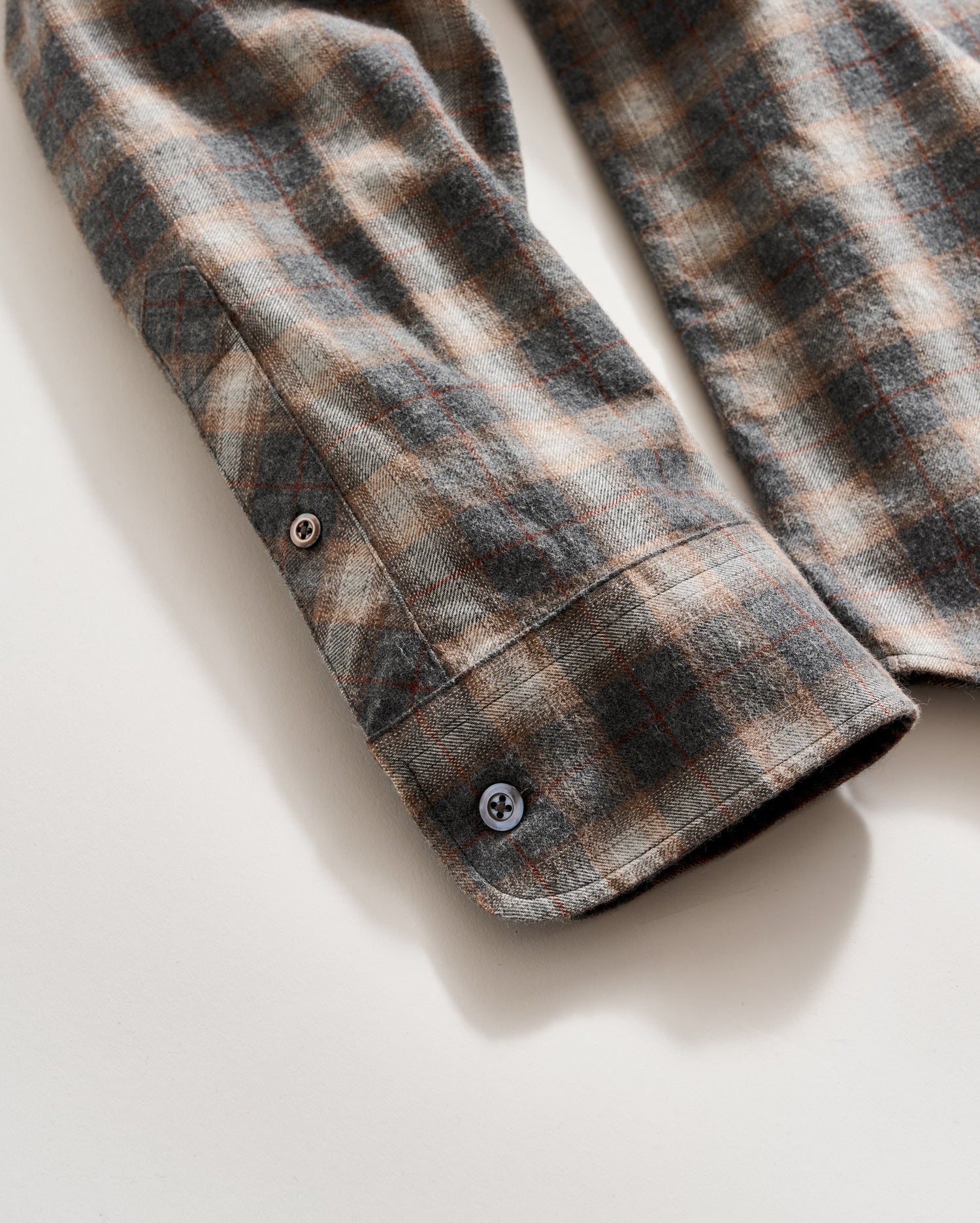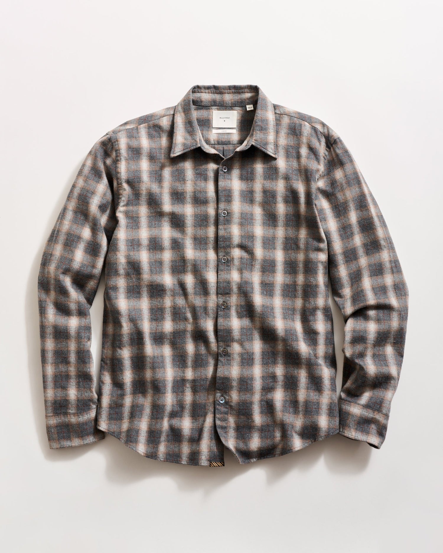 This classic shirt silhouette is one that we’re bringing back in new fabrics and colorways. This version features a custom melange grid plaid that looks great worn on its own, open over a tee, or layered under a sport coat. The soft brushed cotton twill is perfect for the cool days ahead and breathes easy under the sun. We’ve also finished the shirt with smoke mother of pearl buttons.