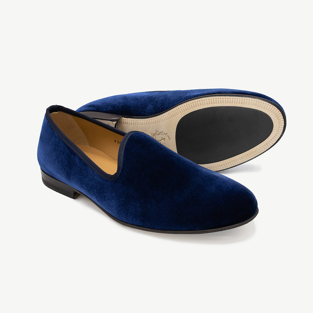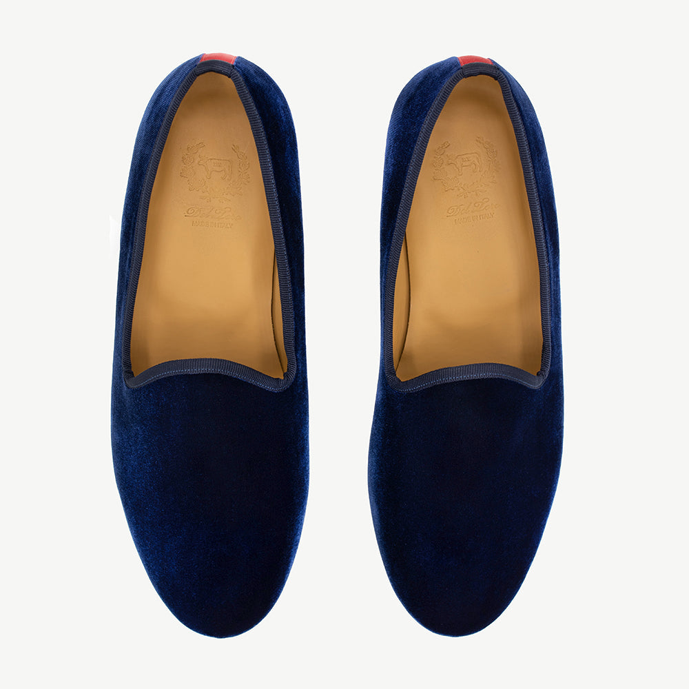 The Navy Velvet Slipper is a design staple and instant classic. Lined with calf-leather that will mold to your foot with every wear, this silhouette strikes the perfect balance for both your luxury and casual inclinations.