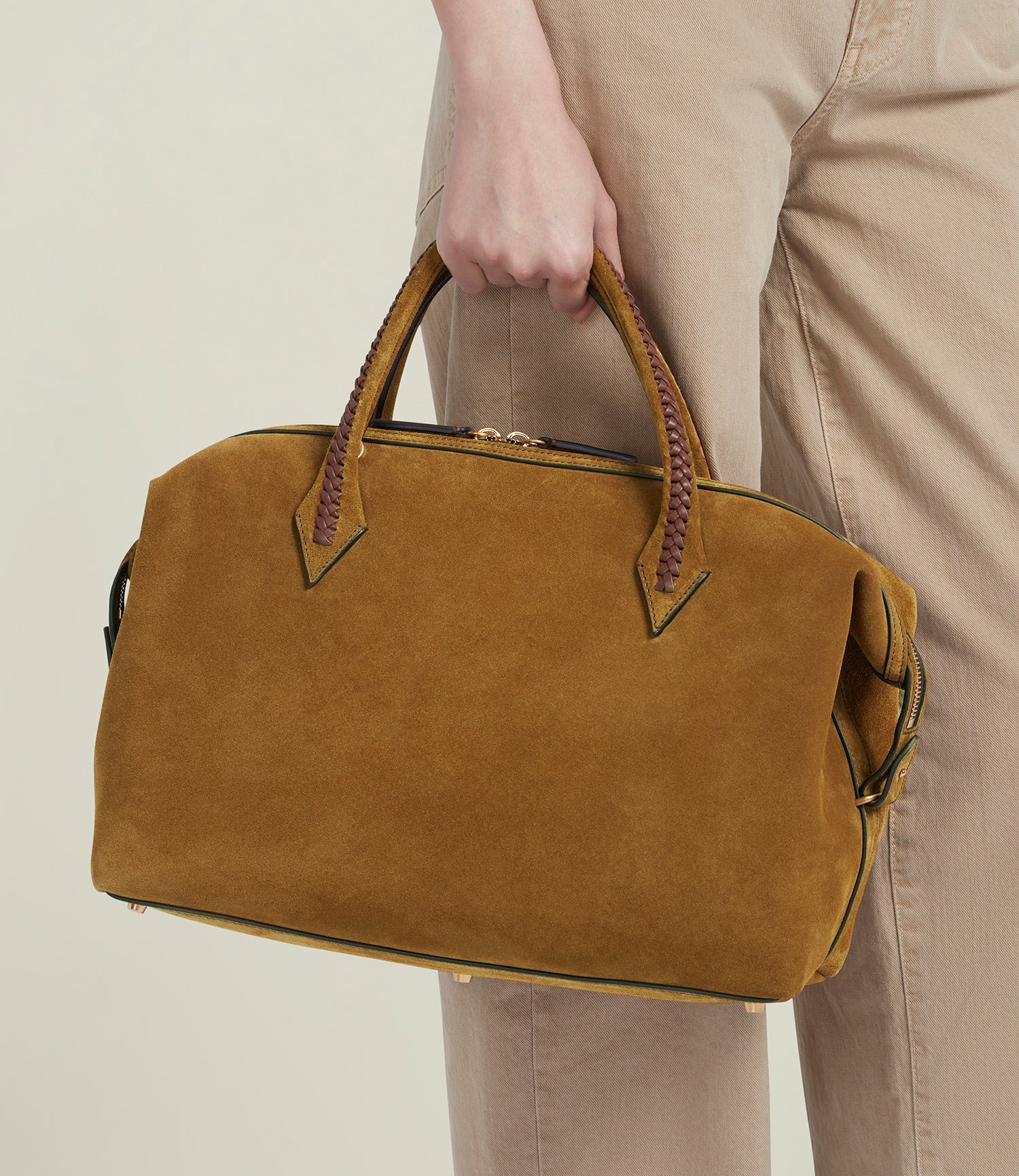 Inspired by Charlotte Perriand, this versatile suede carryall features an adjustable, removable strap and spacious internal compartments. An exterior pocket with a magnetic fixture allows for easy access to your essentials.