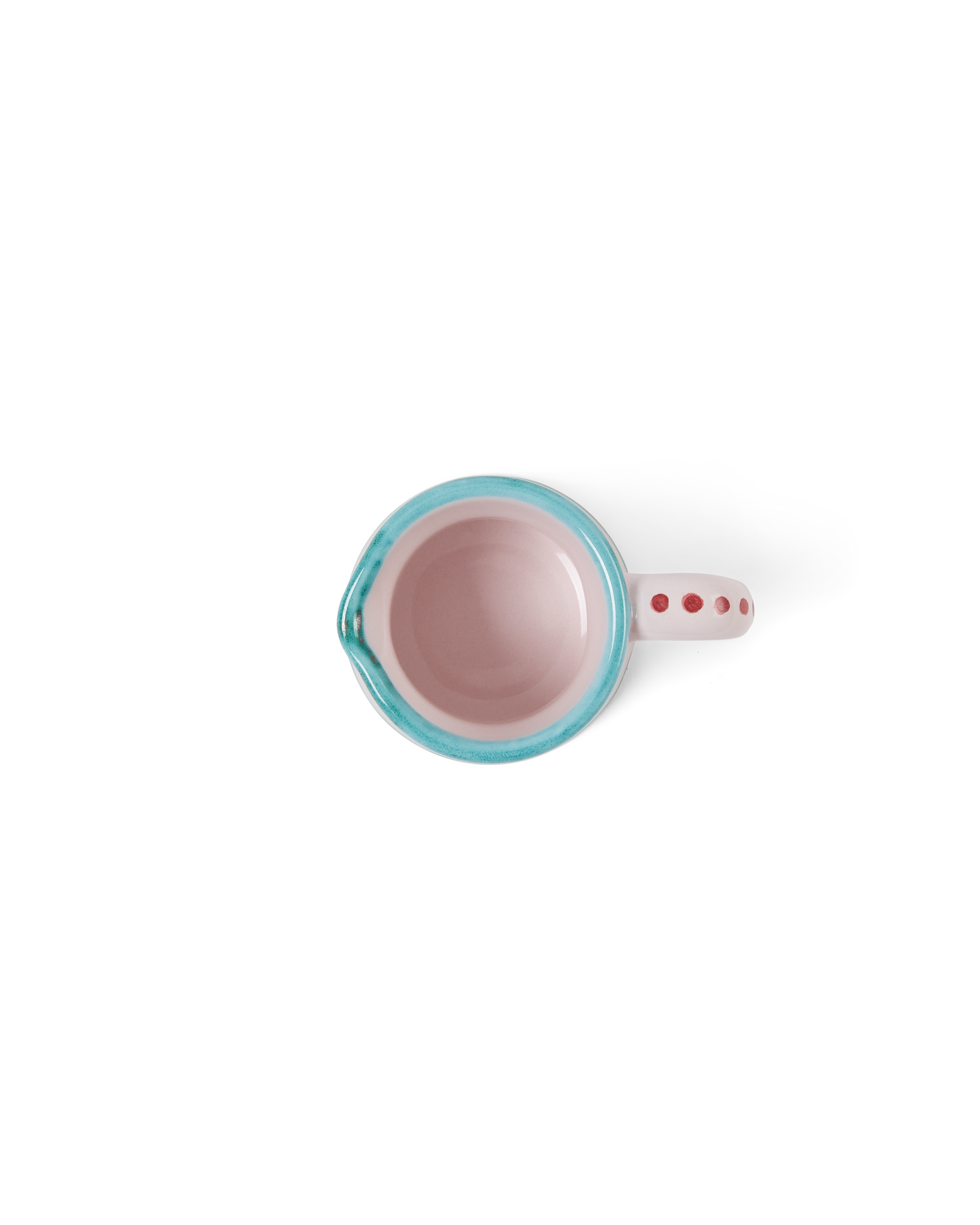 Enhance your tea or coffee service with this charming pastel pink milk jug. Perfect for pouring milk or cream, it adds a touch of sophistication and playful elegance to your table setting.