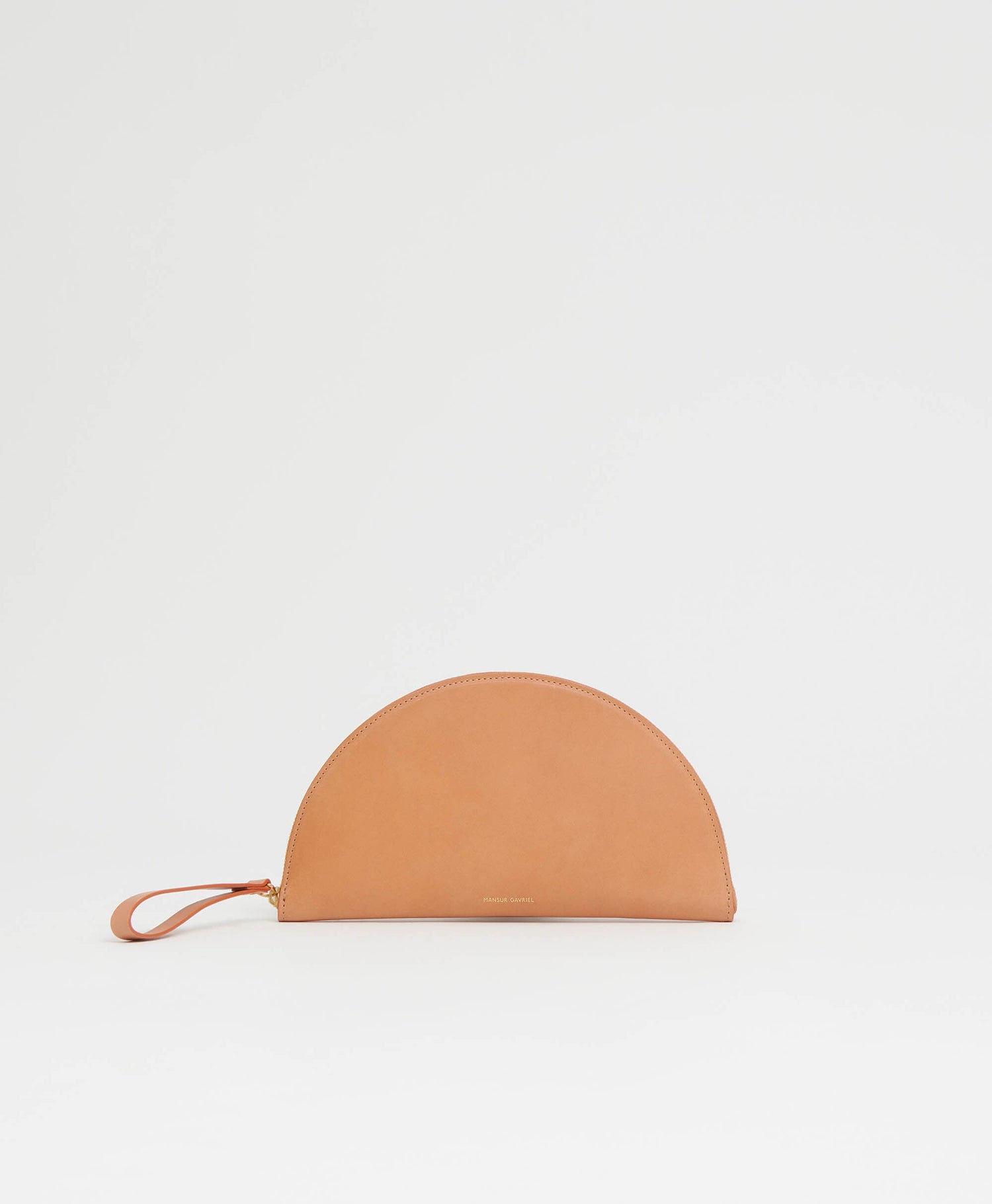 !!!Description---Shaped like a crescent, our Moon Wristlet is crafted from smooth, vegetable tanned Italian leather with a zip pull that doubles as a wrist loop. Its pop of color interior features a slim pocket for cash, credit cards, and the occasional bit of loose change.
