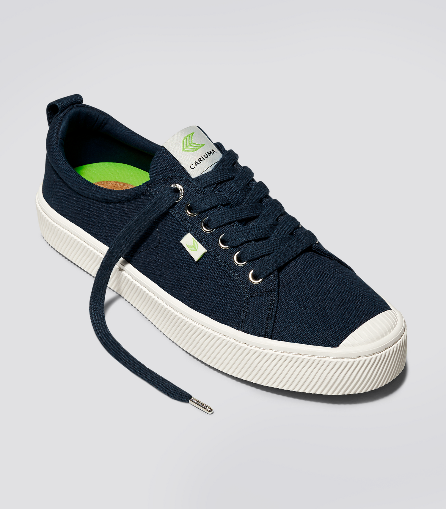 Handcrafted using a robust canvas, the OCA Low Canvas exists at the intersection of functionality and style. With our 100% vegan insoles made from organic mamona oil and cork , it ensures optimal comfort and fit. The OCA Low boast a unique cap toe design and a fully-stitched lightweight outsole for a durable, long-lasting shoe.