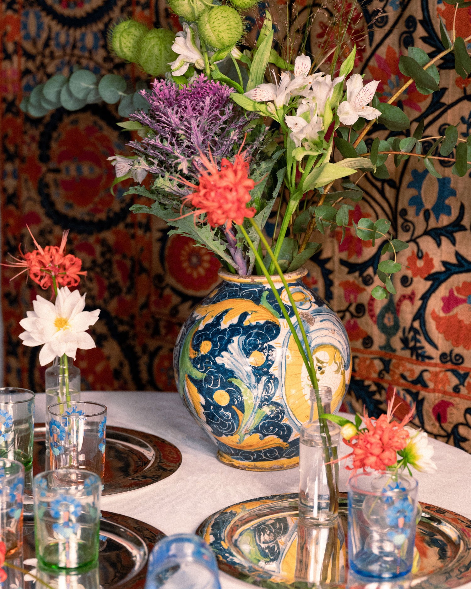 Lean into Emporio Sirenuse's distinct playful style with this Palm Tumbler—a striking piece of glassware that adds a delightful pop of color to your table. Inspired by the avant-garde works of Greek artist Nikos Ghika, the unique palm design creates an unexpected visual contrast with a beautiful gradient effect that ascends from bottom to top. Hand-blown by skilled artisans in Siena, this elegant water glass stands out as a remarkable piece of decor on its own.