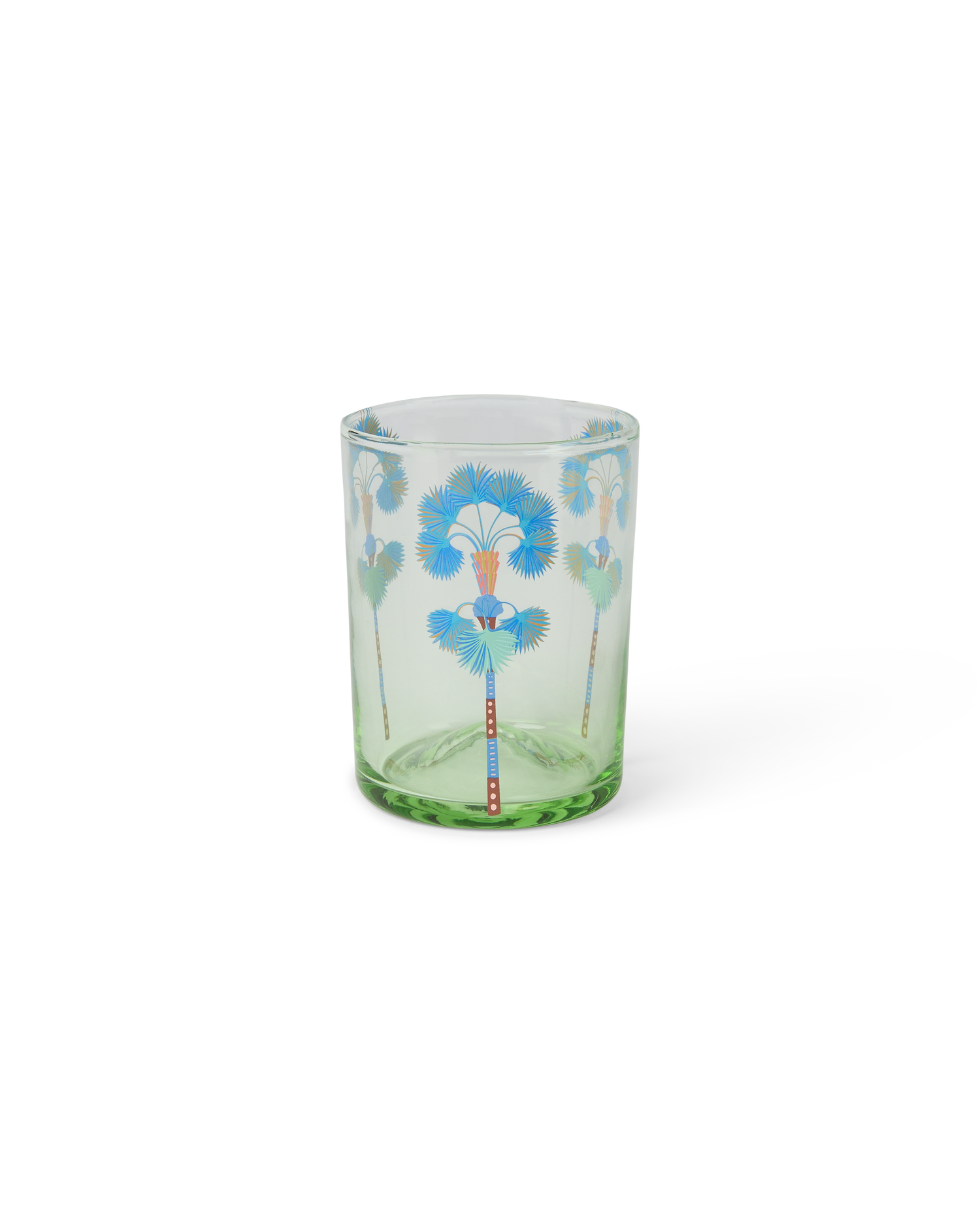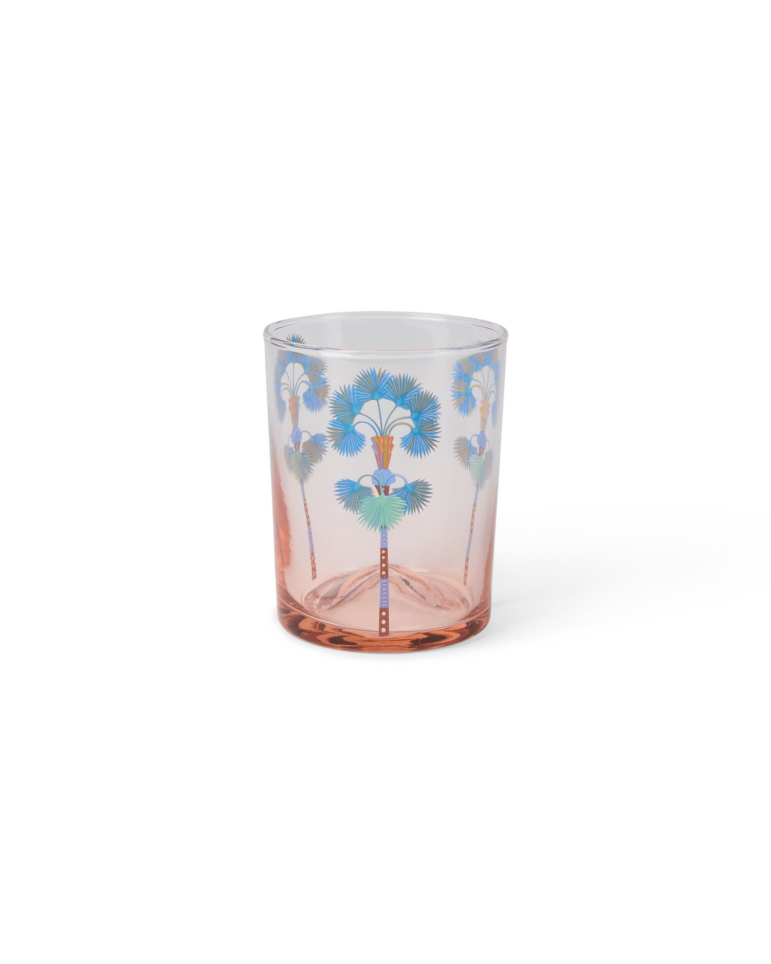 Lean into Emporio Sirenuse's distinct playful style with this Palm Tumbler—a striking piece of glassware that adds a delightful pop of color to your table. Inspired by the avant-garde works of Greek artist Nikos Ghika, the unique palm design creates an unexpected visual contrast with a beautiful gradient effect that ascends from bottom to top. Hand-blown by skilled artisans in Siena, this elegant water glass stands out as a remarkable piece of decor on its own.